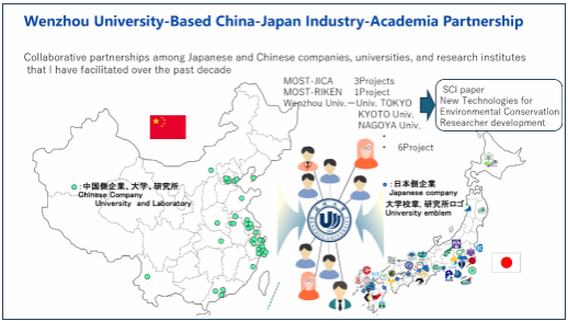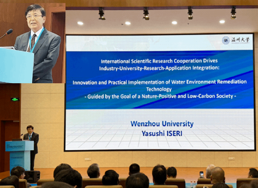 温州大学生命与环境科学学院井芹宁院士受邀出席,并以《国际科研合作驱动产学研用:水环境修复技术创新与实践落地(自然向好低碳社会导向)》为题作主旨报告。报告中,他阐述“人与自然协同共生”理念,以及与“自然向好”目标之间的关联,结合自身参与评估或研发的超200种生态修复技术经验,介绍温州大学在中日合作中的重要成果,包括促成3项国际科技合作项目、签订6项校际交流协定及联合开发新技术装备等。
