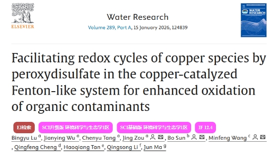 近日,温州大学生命与环境科学学院赵敏教授课题组、哈尔滨工业大学马军院士团队和华侨大学邹景教授团队合作在国际著名期刊《Water research》上在线发表了一篇题为《Facilitating redox cycles of copper species by peroxydisulfate in the copper-catalyzed Fenton-like system for enhanced oxidation of organic contaminants》的研究论文。研究提出了一种利用氧化剂而不是还原剂和螯合剂来提高Cu(II)/H2O2过程氧化能力的新策略,为双氧化剂在金属价环中的协同作用提供了一个新的视角。
