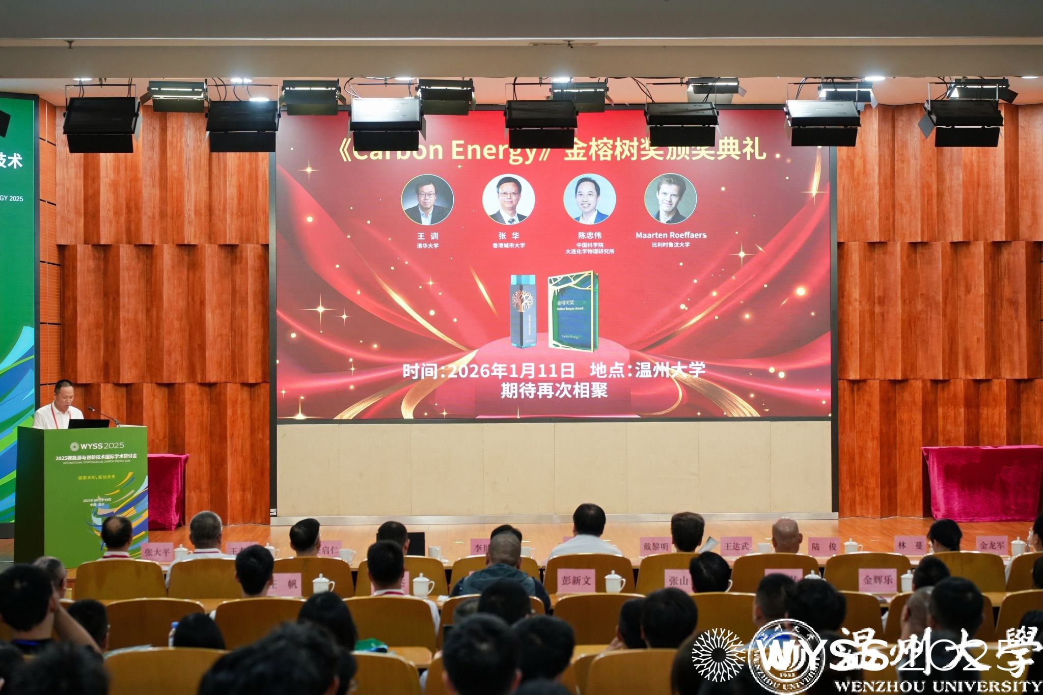 开幕式现场亮点纷呈。《Carbon Energy》(碳能源)・金榕树奖获奖名单正式揭晓,清华大学王训教授、香港城市大学张华教授、中国科学院大连化学物理研究所陈忠伟研究员、比利时鲁汶大学 Maarten Roeffaers 教授 4 位学者获此殊荣,颁奖典礼将于 2026 年 1 月 11 日举行。《Carbon Energy》・优秀青年编委奖同步颁发,Wiley出版集团出版合作总监张大平与该杂志执行编辑金辉乐,为西北大学孙涛、郑州大学尚会姗、温州大学肖遥等 6 位青年学者颁奖,激励青年力量深耕碳能源领域。