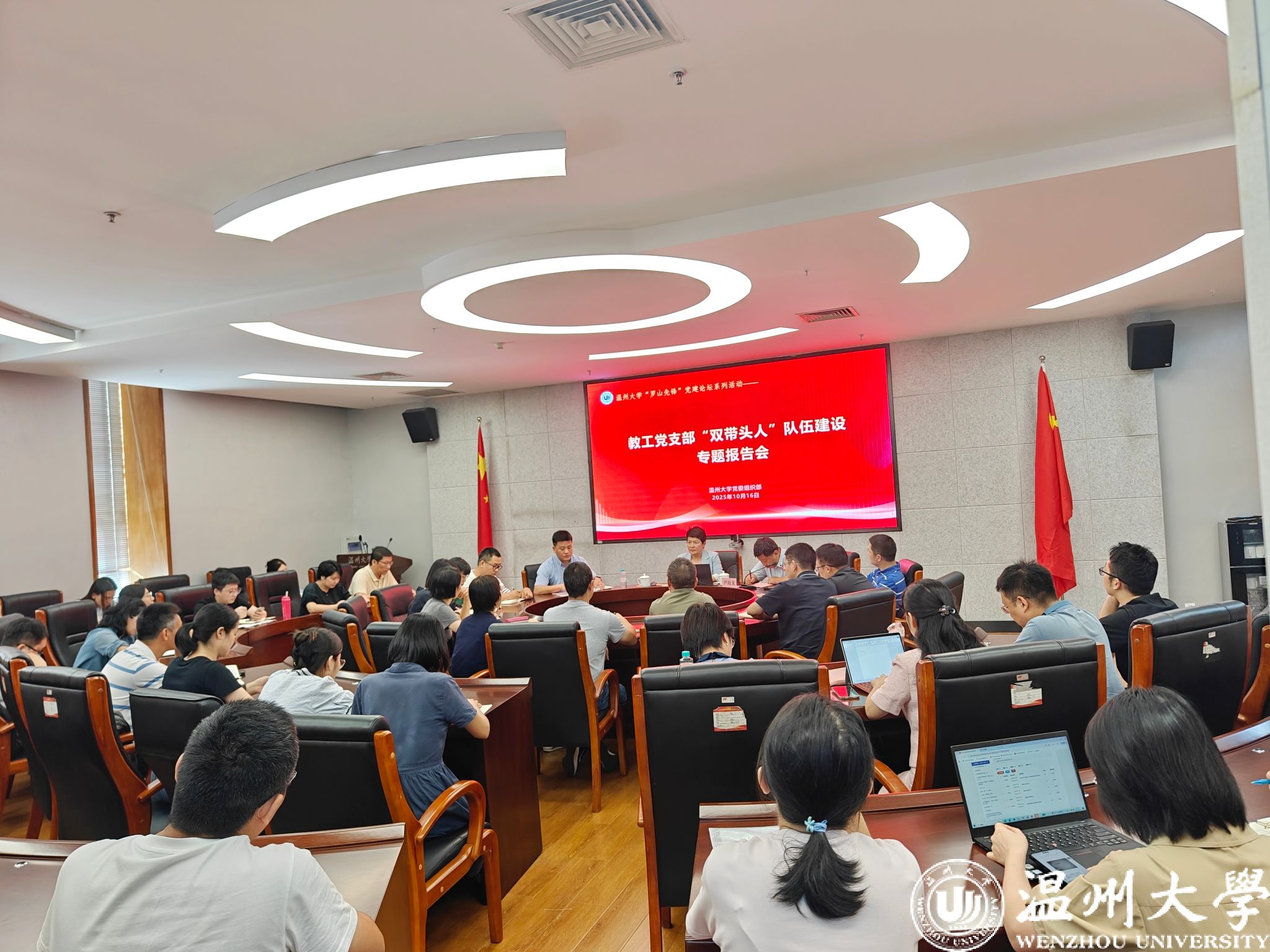 为深入贯彻教育部“双带头人”教师党支部书记“强国行”专项行动有关要求,充分发挥学校“双带头人”示范引领作用,10月16日下午,温州大学“罗山先锋”党建论坛系列活动——教工党支部“双带头人”队伍建设专题报告会在岩松堂展示厅举办。专题报告会邀请“强国行”专项行动办公室常务主任李继红教授、同济大学环境工程系教工党支部书记尹海龙教授作专题报告和经验分享。学校全省高校“双带头人”教师党支部书记“强国行”专项行动团队、全省高校“双带头人”教师党支部书记工作室负责人、省级以上样板支部书记、“罗山红脉”组织员领航工作室“四强”组织员培养对象等50余人参会。