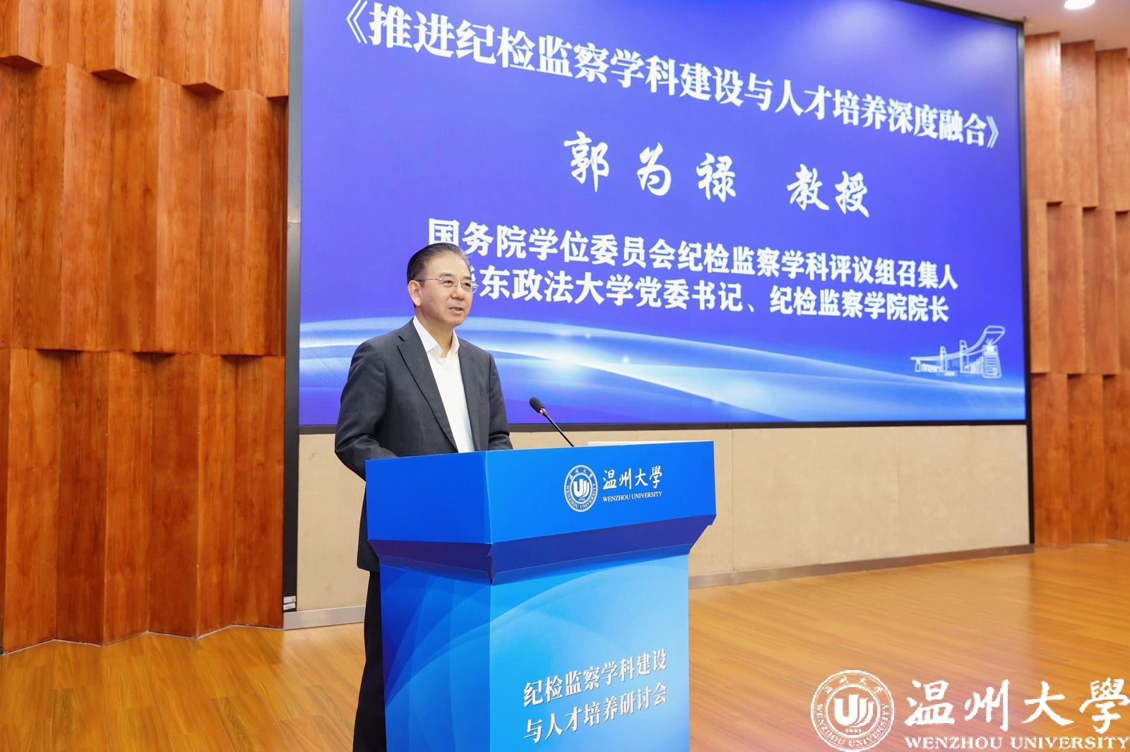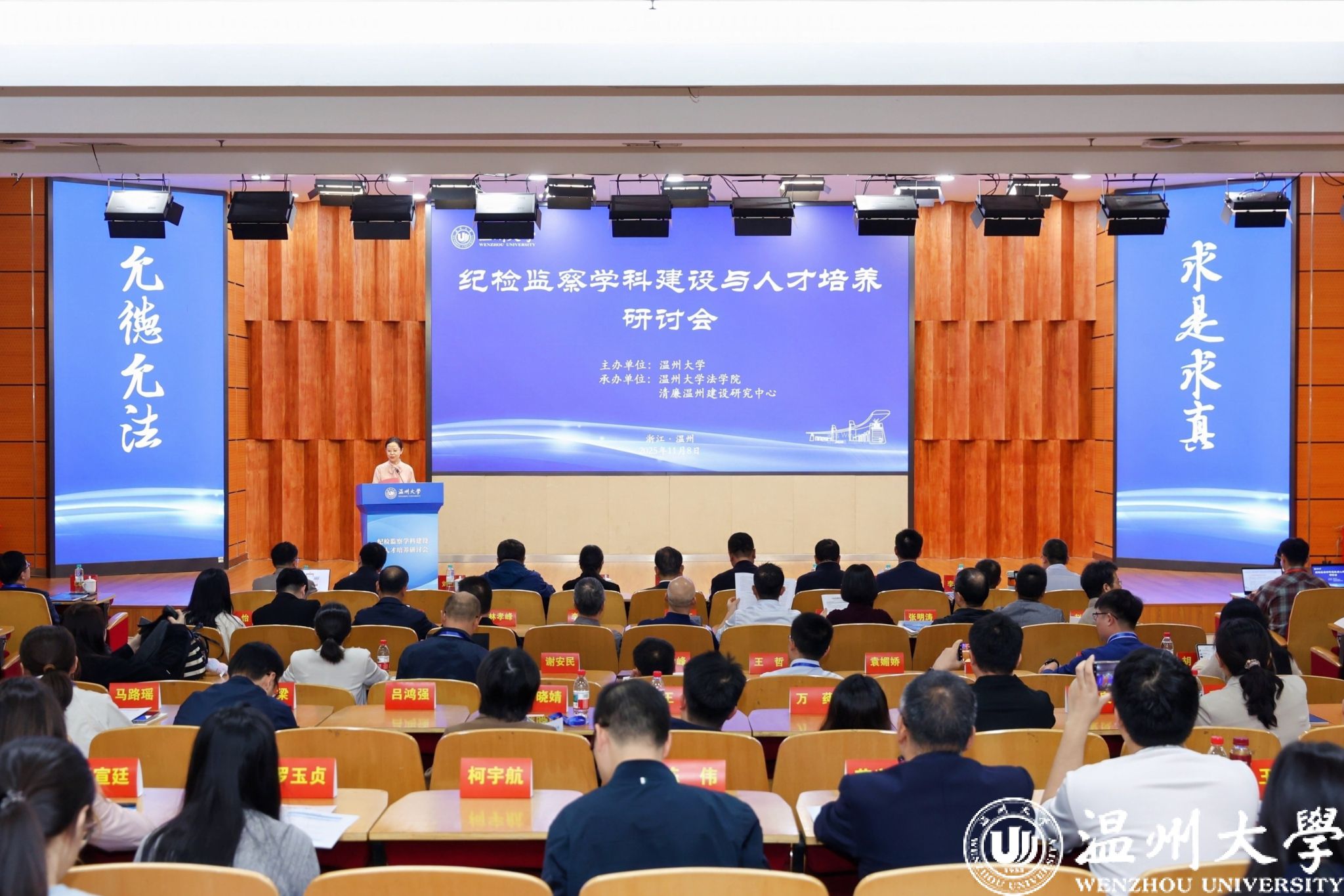 2025年11月8日,由温州大学主办,温州大学法学院、清廉温州建设研究中心承办的“纪检监察学科建设与人才培养研讨会”在温州大学岩松堂隆重召开。国务院学位委员会纪检监察学科评议组召集人、华东政法大学党委书记郭为禄,浙江省教育厅党组成员、省纪委监委驻省教育厅纪检监察组组长、省纪检监察协会副会长王健,国务院学位委员会纪检监察学科评议组成员、复旦大学纪检监察研究院执行院长刘志刚,苏州大学国家监察研究院院长、王健法学院教授李晓明,温州市纪委常务副书记、市监委副主任龚大昕,温州大学校领导钱强、刘玉侠、李都金,以及华东政法大学、苏州大学、东南大学、南京大学、西南政法大学等全国47所高校、科研院所的百余位专家学者,温州市纪委监委等实务部门与行业代表、温州大学师生代表齐聚一堂,围绕纪检监察学科与人才培养深度融合展开高峰对话。