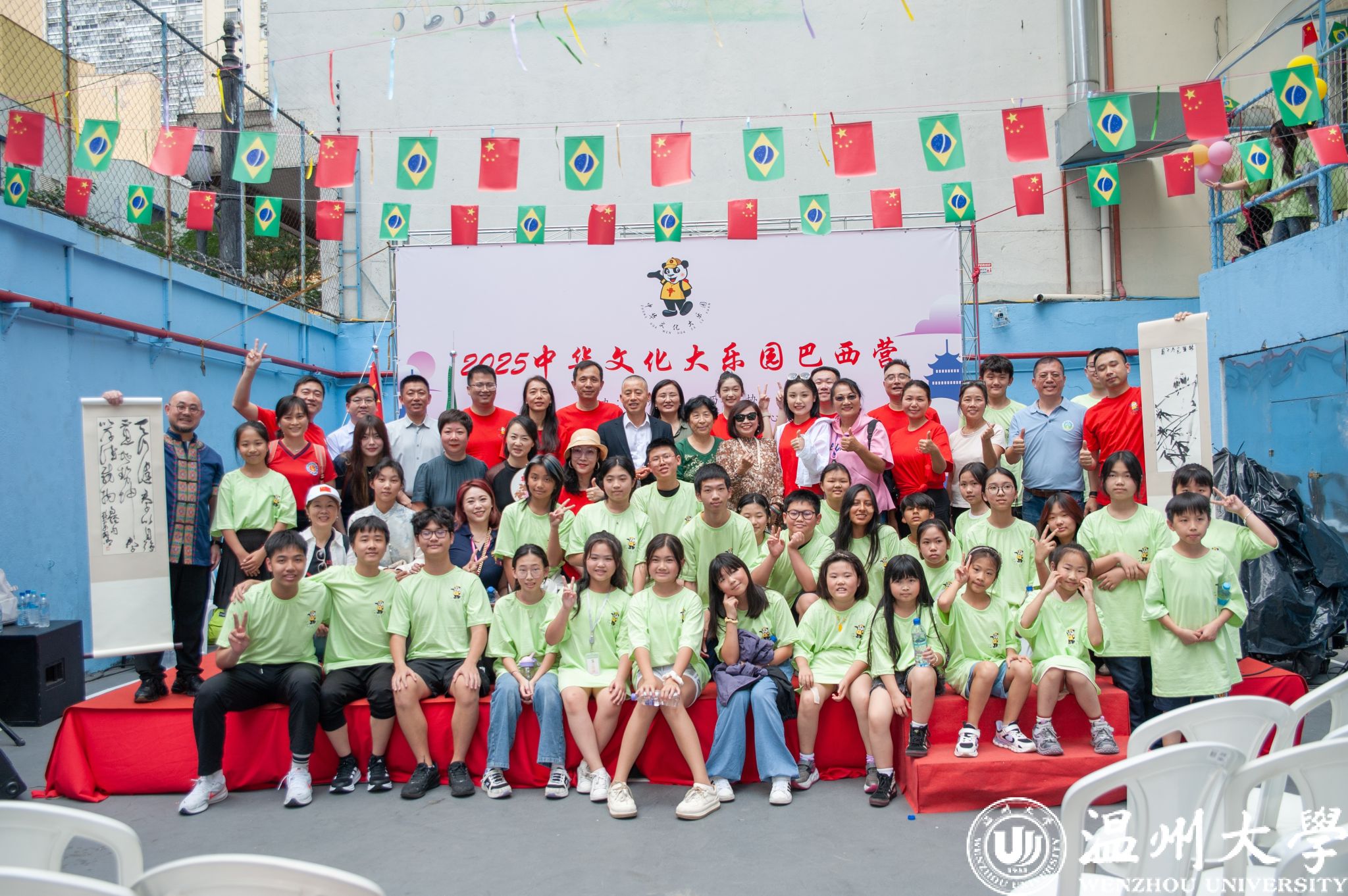 “2025中华文化大乐园巴西营”活动由温州大学和巴西华人协会联合主办,温州大学华侨学院、圣保罗华助中心教育组承办。活动在圣保罗德馨双语学校举行,7所巴西华文学校的师生参与活动。在为期一周的活动中,来自温州大学的14名教师将讲授中华礼仪文化、书法、武术、戏曲、汉服秀、中国舞蹈、舞龙、儿童剧、葫芦丝、中国画、中华时尚设计与表演、扎染艺术等丰富课程,带领华裔青少年深入感受中华文化的深厚底蕴。