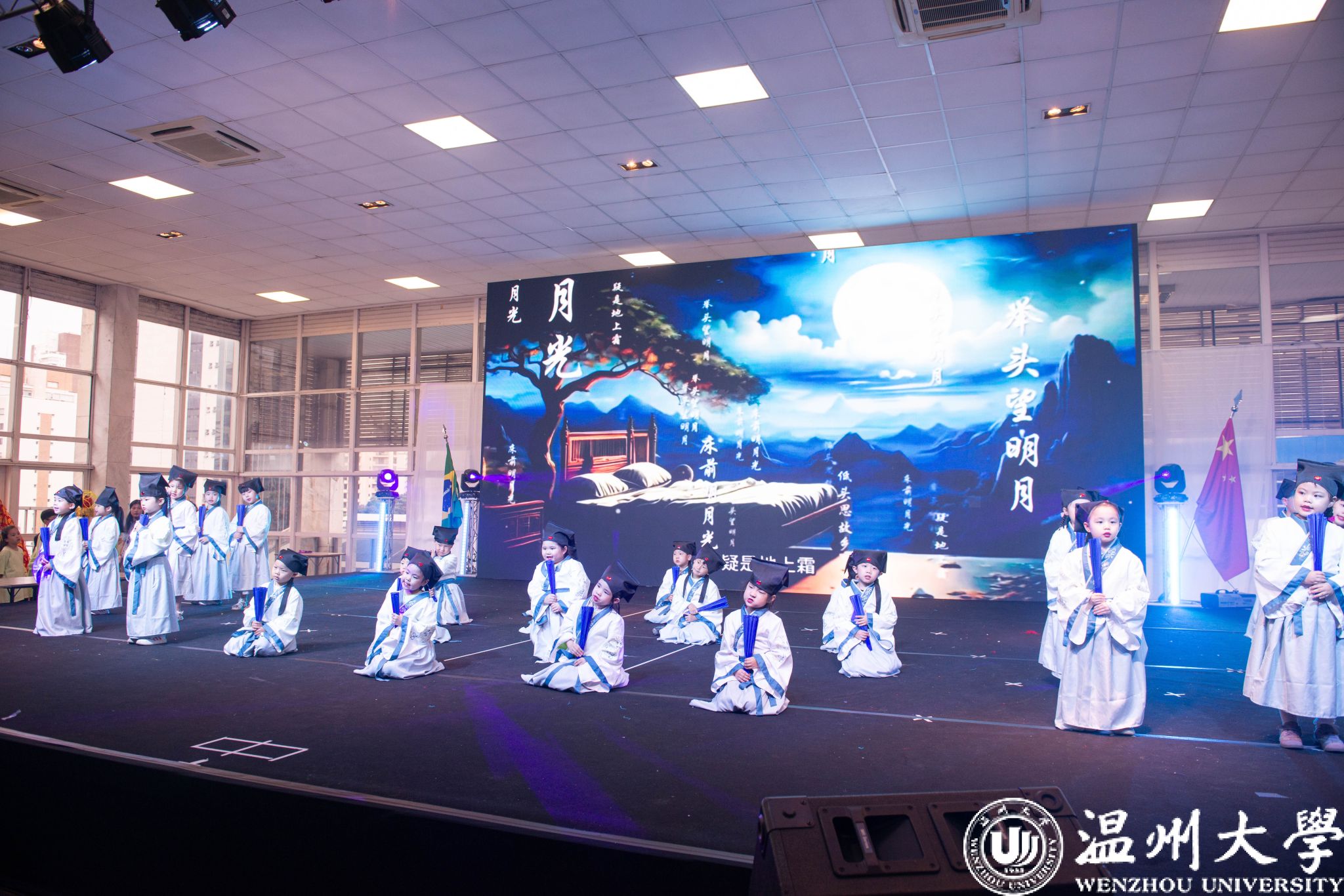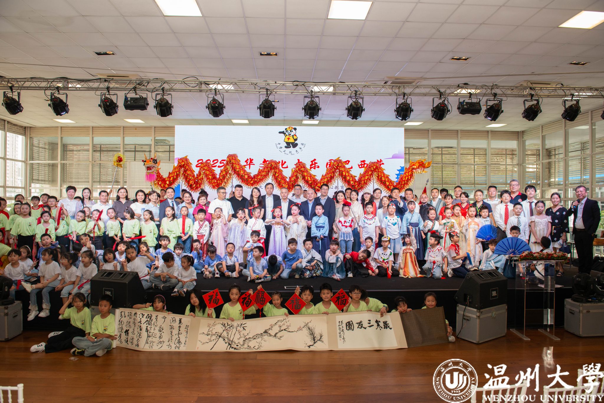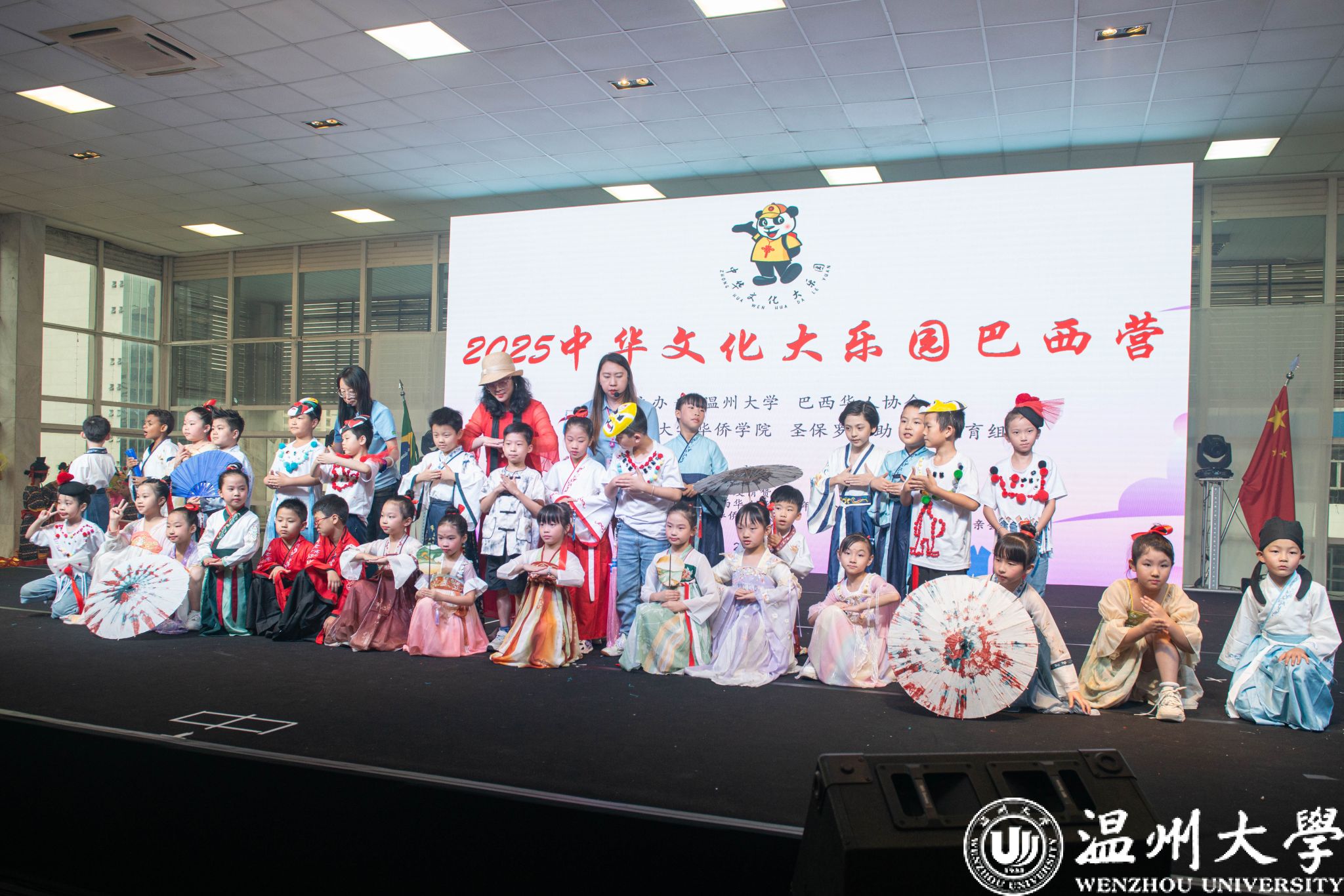 本次“中华文化大乐园”巴西营由温州大学与巴西华人协会联合主办,温州大学华侨学院与圣保罗华助中心教育组共同承办,旨在通过沉浸式文化体验,增进华裔青少年对中华文化的认同与热爱。在为期一周的活动中,温州大学的14名教师为来自7所中文学校的419名营员带来了中华礼仪文化、书法、武术、戏曲、汉服秀、中国舞蹈、舞龙舞狮、儿童剧、葫芦丝、中国画、时尚设计与表演、扎染艺术等二十余门课程,创造了历届参与人数新高。