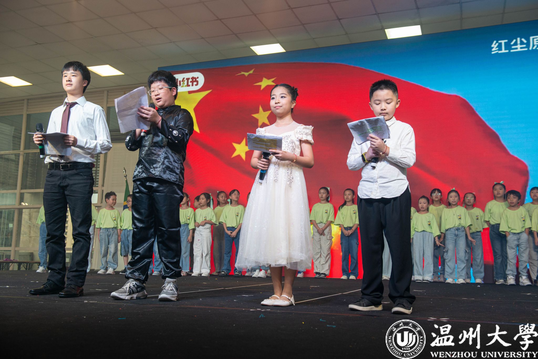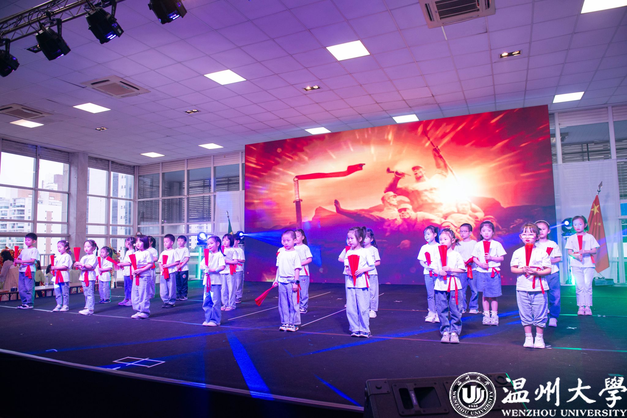 温州大学附属实验幼儿园郑向红老师指导的少儿扇子舞《中华少年》。一群朝气蓬勃的少年用挺拔的身姿、灿烂的笑容展现他们的青春与活力。