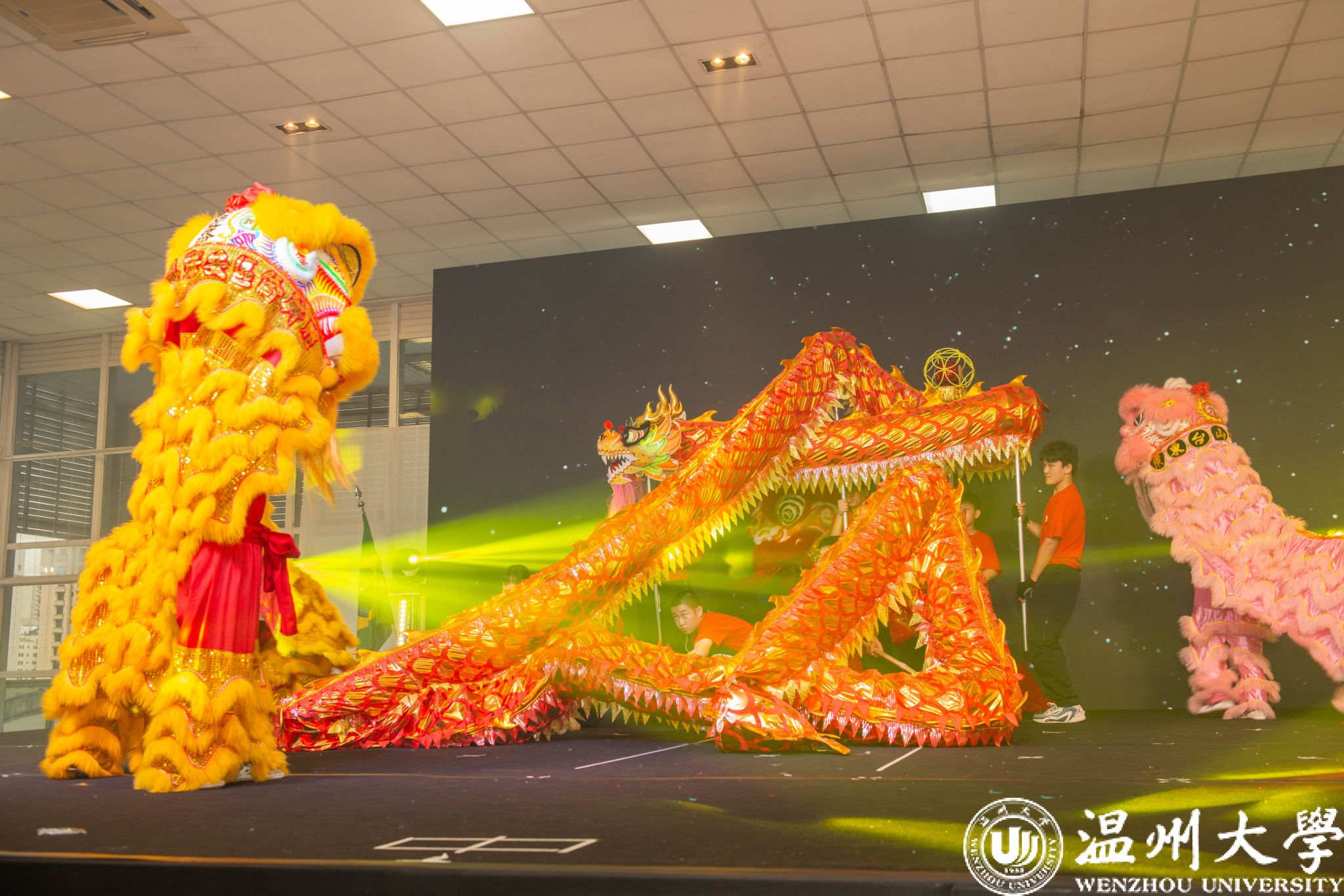 体育与健康学院周义义老师指导的开场秀《龙狮共舞大乐园》瞬间点燃全场热情,他们以生动的姿态、激昂的节奏,演绎着中华文化的精髓。