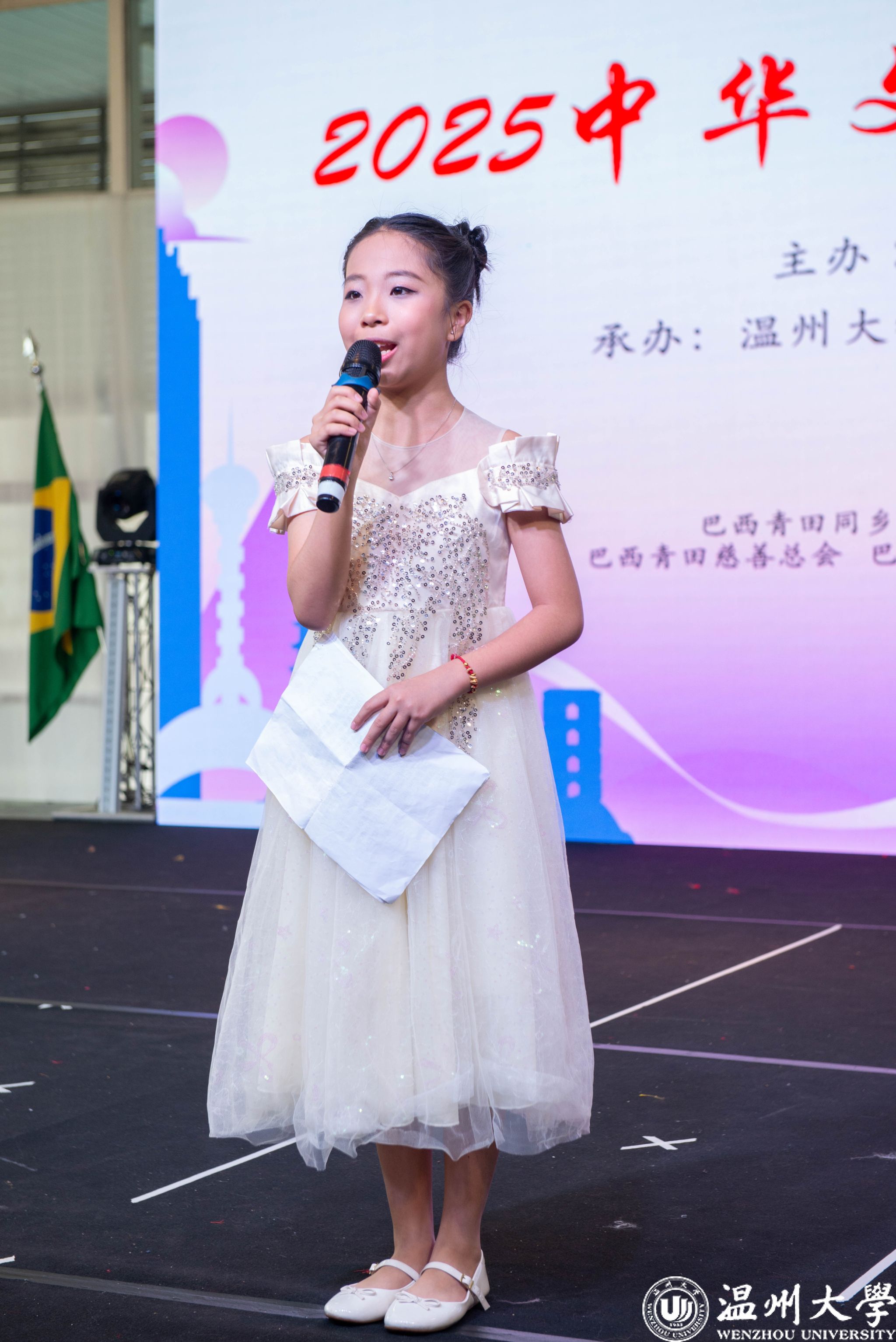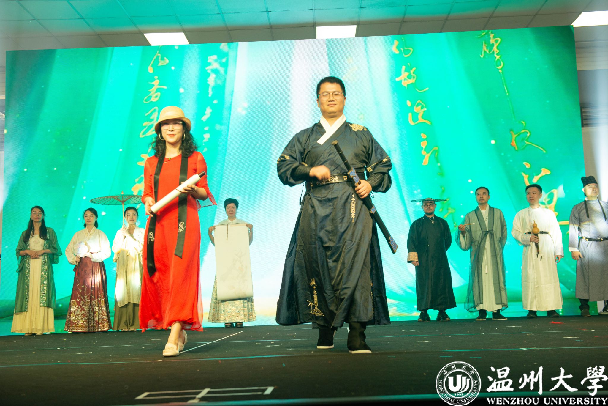 温州大学全体教师团成员身着中国传统汉服带来的汉服秀《雅韵中巴》展现了中华服饰之美,让在场的侨胞们感受到浓郁的民族风情与深厚的文化底蕴。
