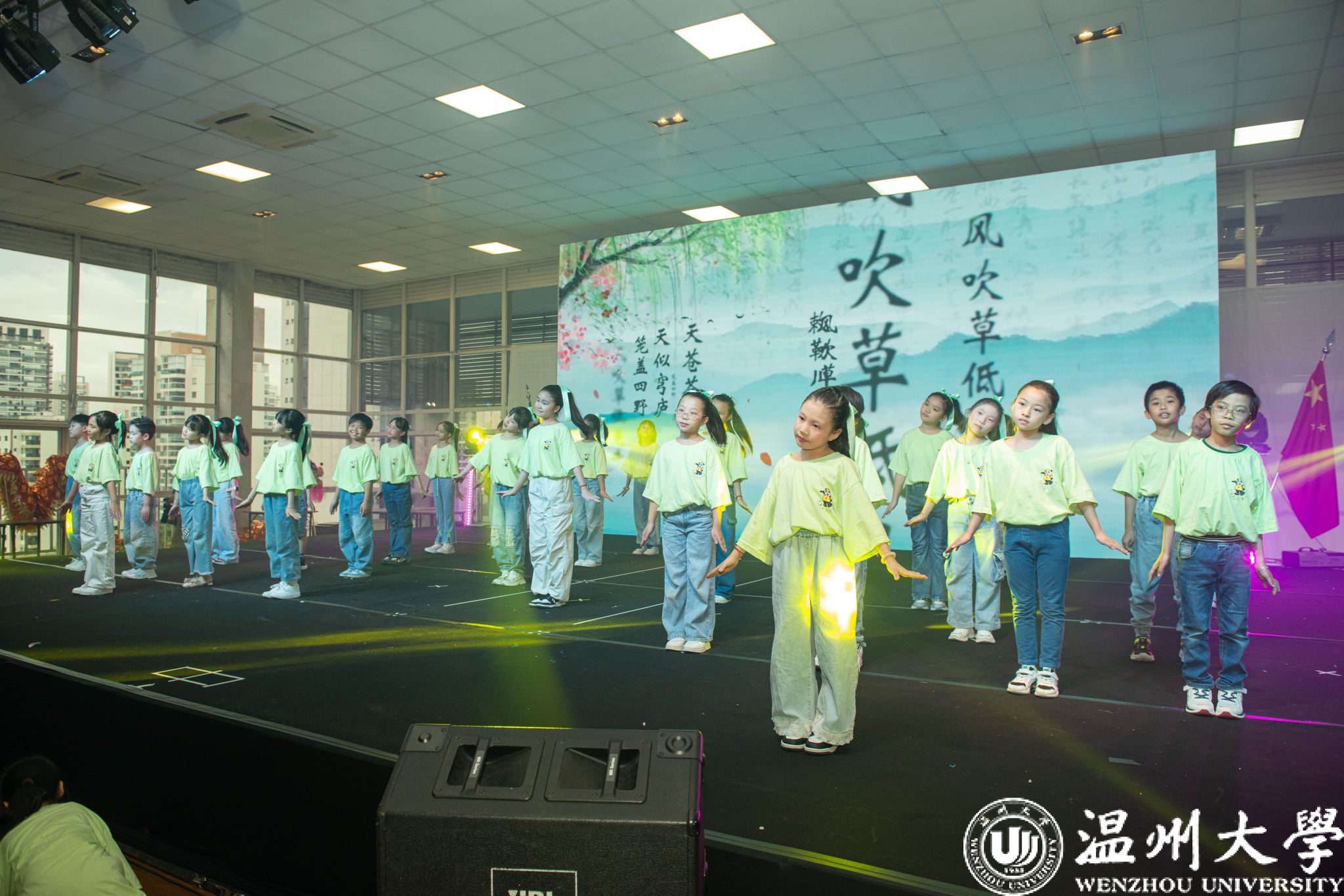 音乐学院李恒子老师指导的群舞《一条大河》在激昂而柔情的旋律中展开。孩子们用灵动的身姿,深情的演绎诉说着对祖(籍)国的眷恋。