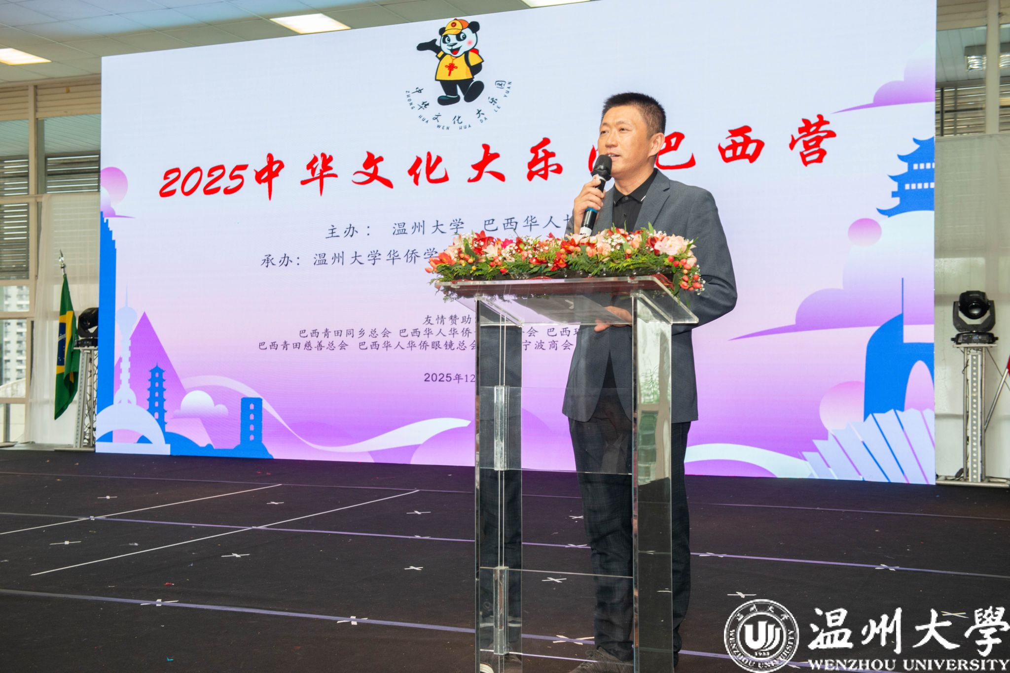 巴西当地时间12月12日下午,圣保罗保利斯达网球俱乐部礼堂洋溢着浓厚的中华文化氛围,“2025中华文化大乐园巴西营”结营仪式在此举行。中国驻圣保罗总领馆副总领事谢炎村、领侨处主任荣强,巴西华人协会会长叶周永等侨团负责人,圣保罗华助中心教育组组长胡军,温州大学“中华文化大乐园”代表团成员、圣保罗华文学校负责人、文化大乐园巴西营营员及家长共约600余人出席结营仪式。
