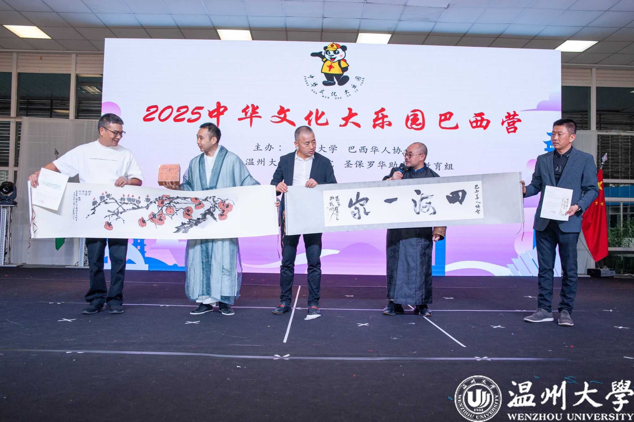 在中华文化大乐园活动期间,学校与巴西侨界达成多项合作。结营仪式上举行了合作基地授牌仪式,学校分别与巴西华人协会、圣保罗华助中心、德馨双语学校就“华文教育研究基地”、“国家语言文字推广基地(温州大学)巴西工作站”、“中国华侨华人研究(温州大学)基地巴西调研基地”、“华裔儿童教育研究中心巴西基地”达成合作并授牌,标志着温州大学与巴西侨界交流迈向制度化、常态化新阶段。