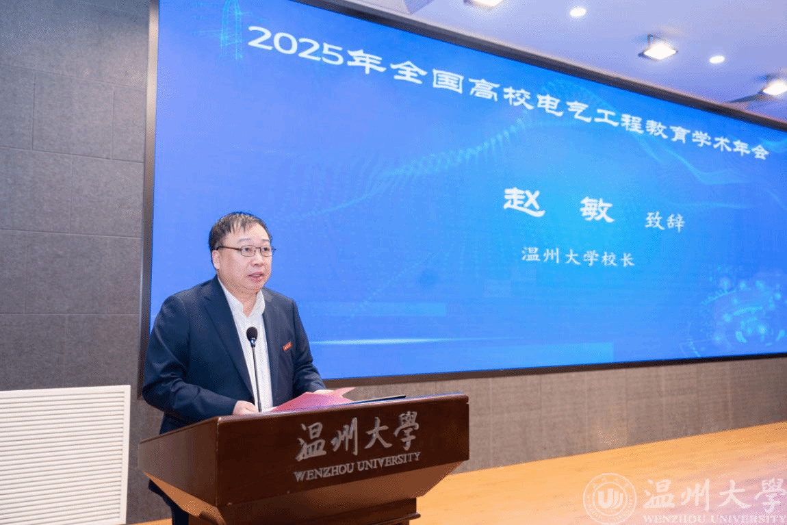 赵敏校长致开幕词。他首先代表学校对年会的召开和赛事的顺利举办表示祝贺,并向与会嘉宾、代表致以欢迎。他介绍了温州大学的办学历程与特色,并着重指出,依托“中国电器之都”的产业优势,拥有千亿级电气产业集群的强力支撑,温州大学电气工程相关专业正呈现出蓬勃的发展态势。他希望与会专家围绕新工科建设、交叉融合培养等关键议题,深入交流前沿理念与实践经验,凝聚发展共识,为电气工程教育高质量发展注入新动能。