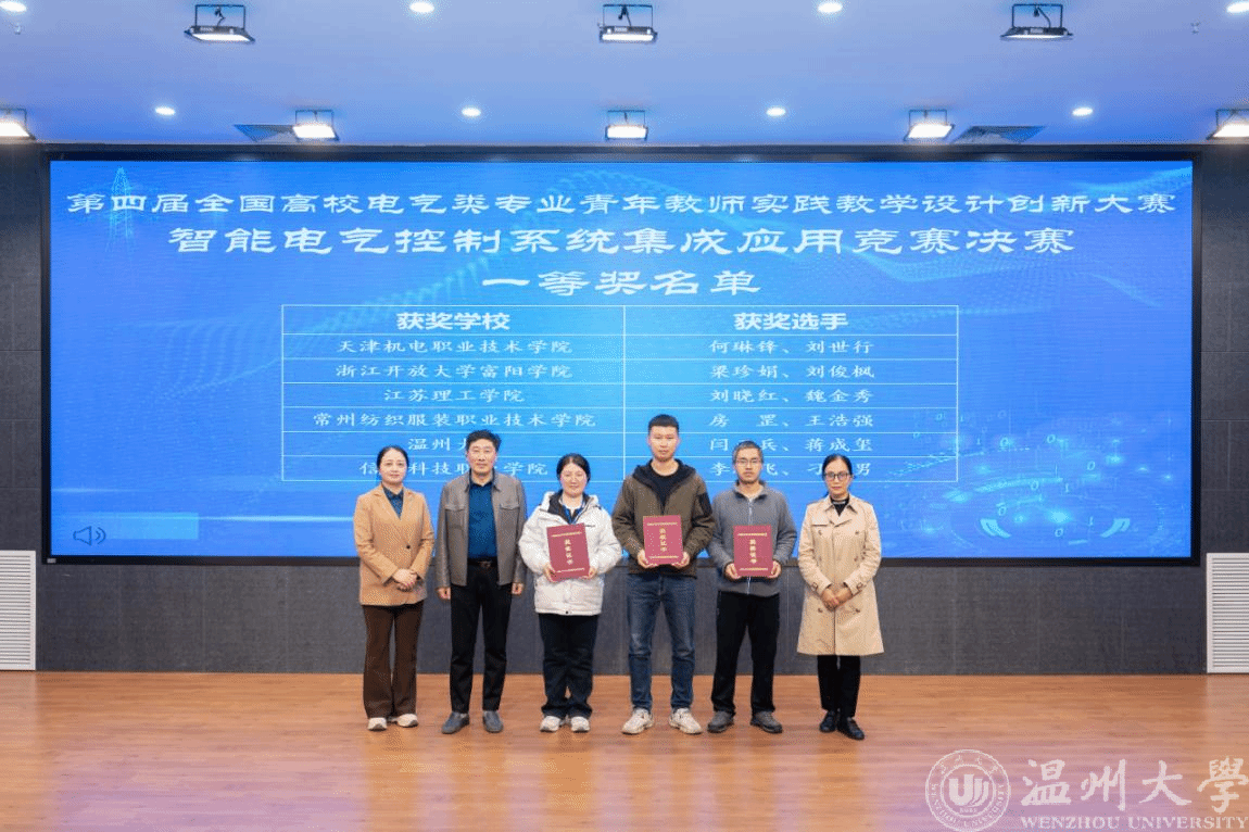 教育部高等学校电气类专业教学指导委员会副主任、竞赛总裁判长戈宝军教授对大赛进行点评。与会领导嘉宾为电子电工技术应用、电力电子技术应用等6个赛道的冠军团队颁奖。我校3支队伍进入决赛,分别获得智能电气系统集成应用赛项、物联网技术集成应用赛项决赛一等奖、人工智能技术应用创新竞赛二等奖。温州大学获评大赛“优秀组织单位”。
