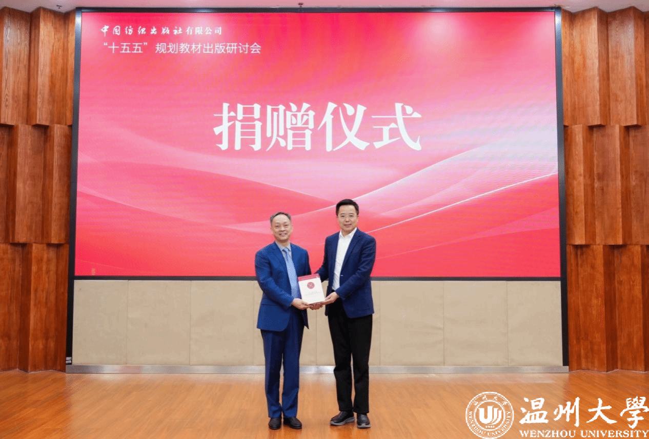 大会现场,举行了图书捐赠仪式,中国纺织出版社有限公司向温州大学捐赠700余种专业图书,深化校企合作,助力温州大学纺织服装专业建设。