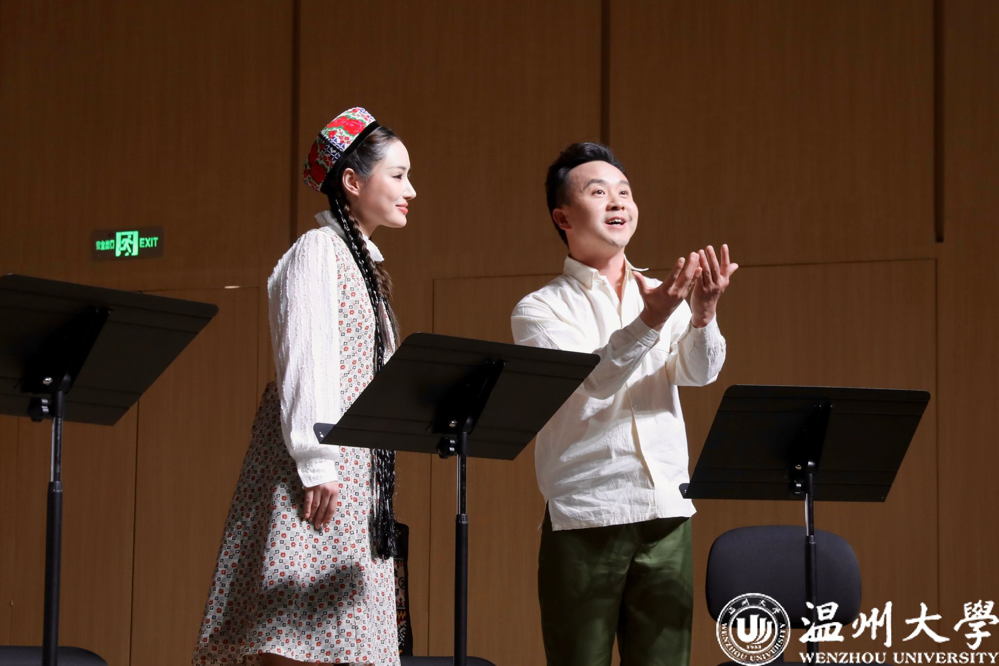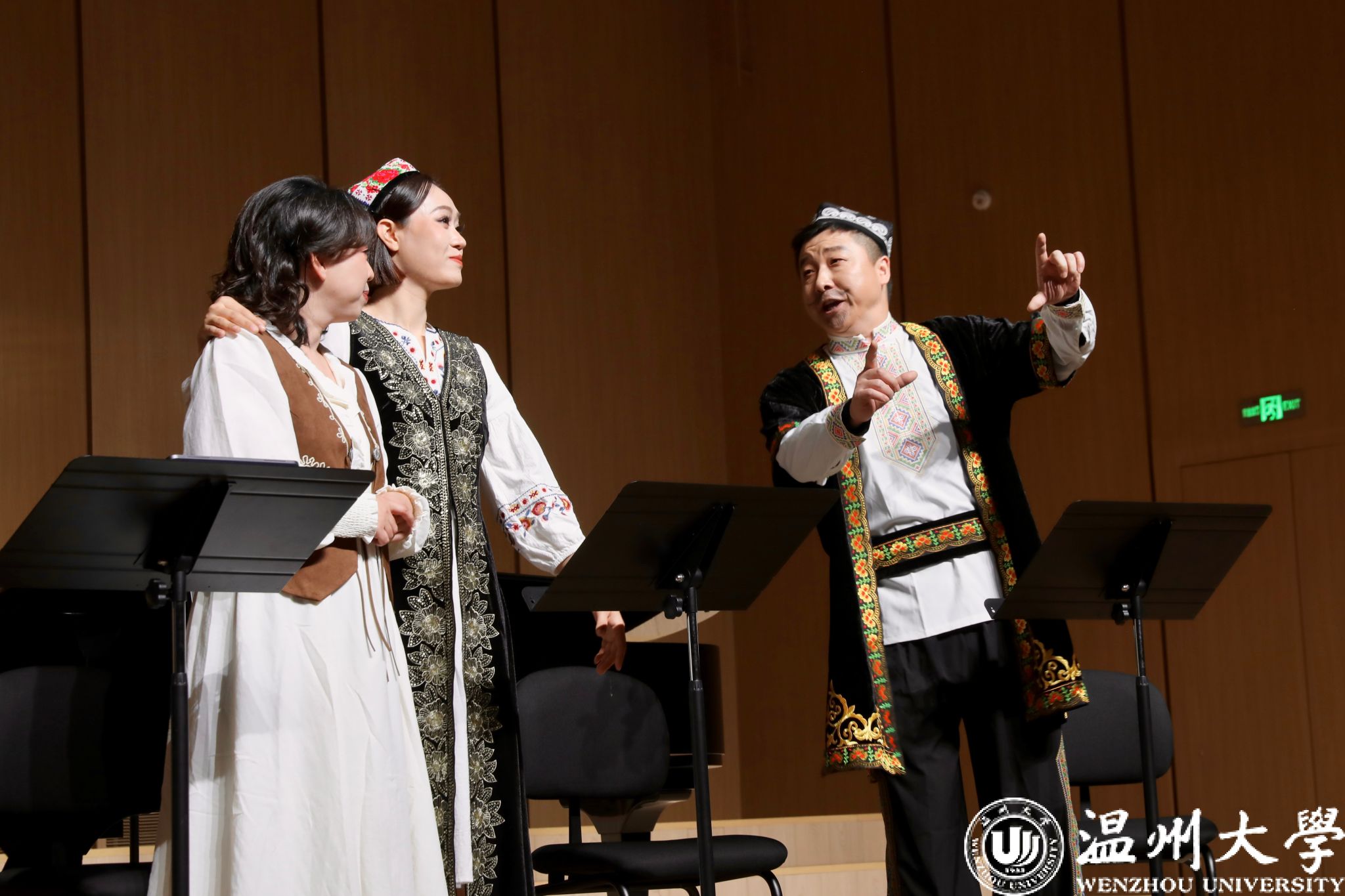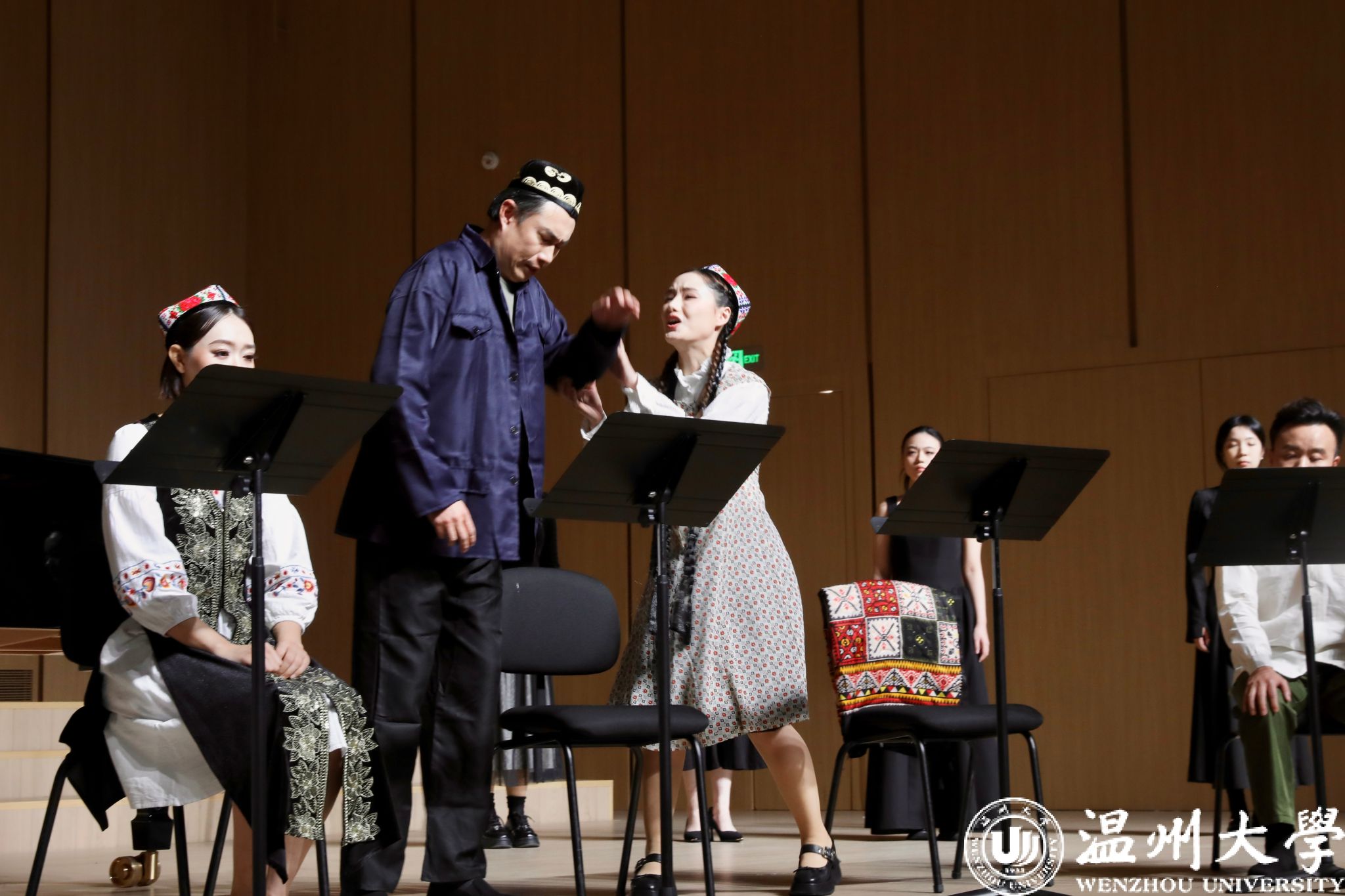 1月5日晚,温州大学天瑞音乐厅内灯火通明、座无虚席,由温州大学音乐学院倾力打造的原创民族歌剧《石榴红》(音乐会版)在此温情启幕。该剧由浙江文艺创研中心编剧温润执笔、温州大学音乐学院徐文正教授作曲,作品深度融合瓯剧、鼓词、民歌等温州本土艺术元素,是一部根植温州、情系新疆、歌颂民族团结的本土原创歌剧佳作。