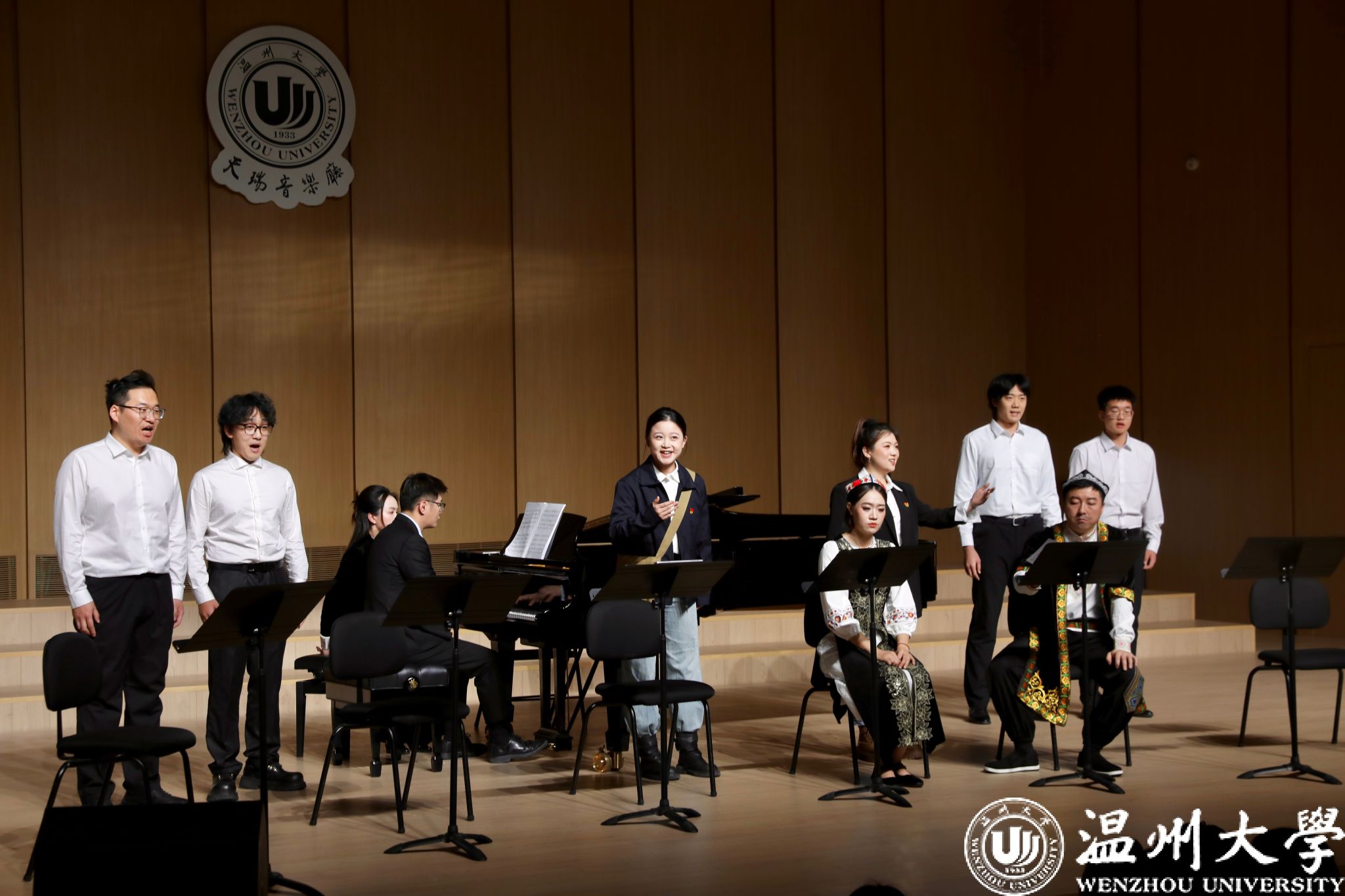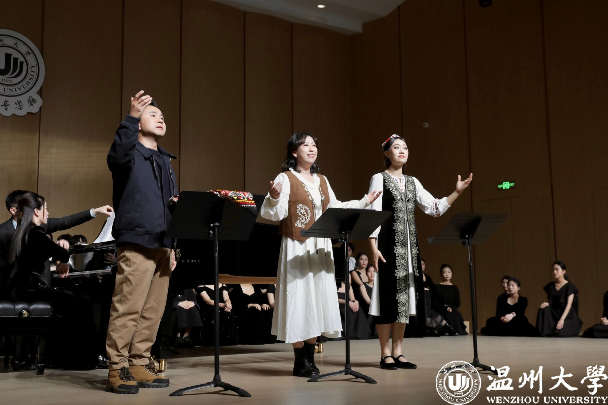 本次音乐会版首演由温州大学音乐学院组织140余名师生共同完成。在声乐系主任叶文辉教授的指挥下,声乐系骨干教师与优秀学生以饱满的热情全情投入,将这部融合东西部音乐语汇、承载深沉情感的作品精湛呈现,淋漓尽致地展现了民族歌剧的艺术魅力。