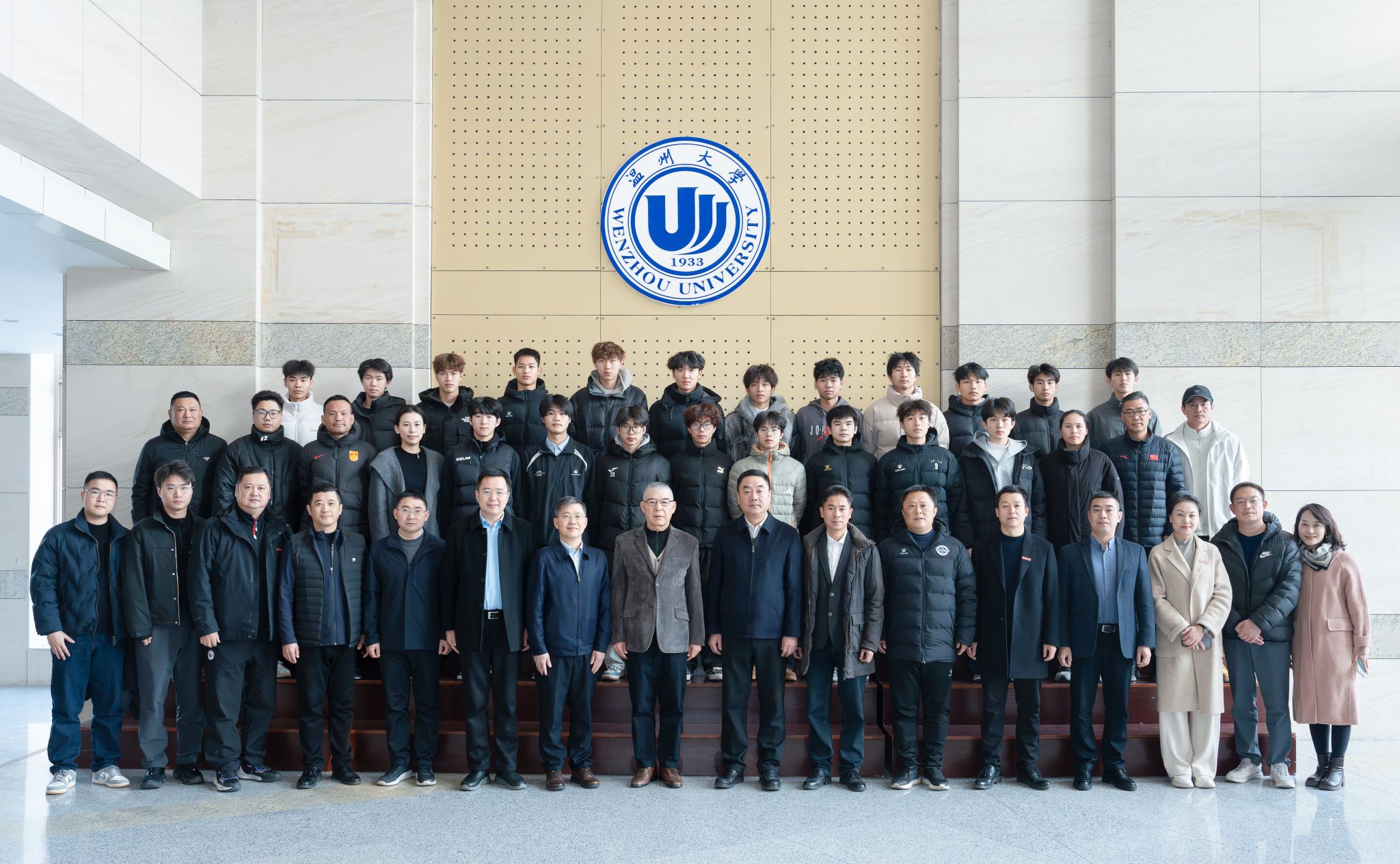 1月12日,我校与浙江省足球协会、温州市体育局战略合作框架协议签约仪式在温州大学南校区岩松堂举行,三方正式为“浙江省足球协会青少年足球人才培养基地”与“浙江省足球协会教练员裁判员培训基地”揭牌。浙江省足球协会主席夏海伟,温州大学党委书记钱强,浙江省足球协会常务副主席陆翔,温州大学副校长王尧骏,温州市体育局党组成员、副局长杜继正出席本次活动,浙江省足协代表、温州市体育局处室负责人,温州大学相关职能部门负责人、体育与健康学院全体班子成员及足球运动专业师生代表到场,共同见证签约、揭牌仪式。