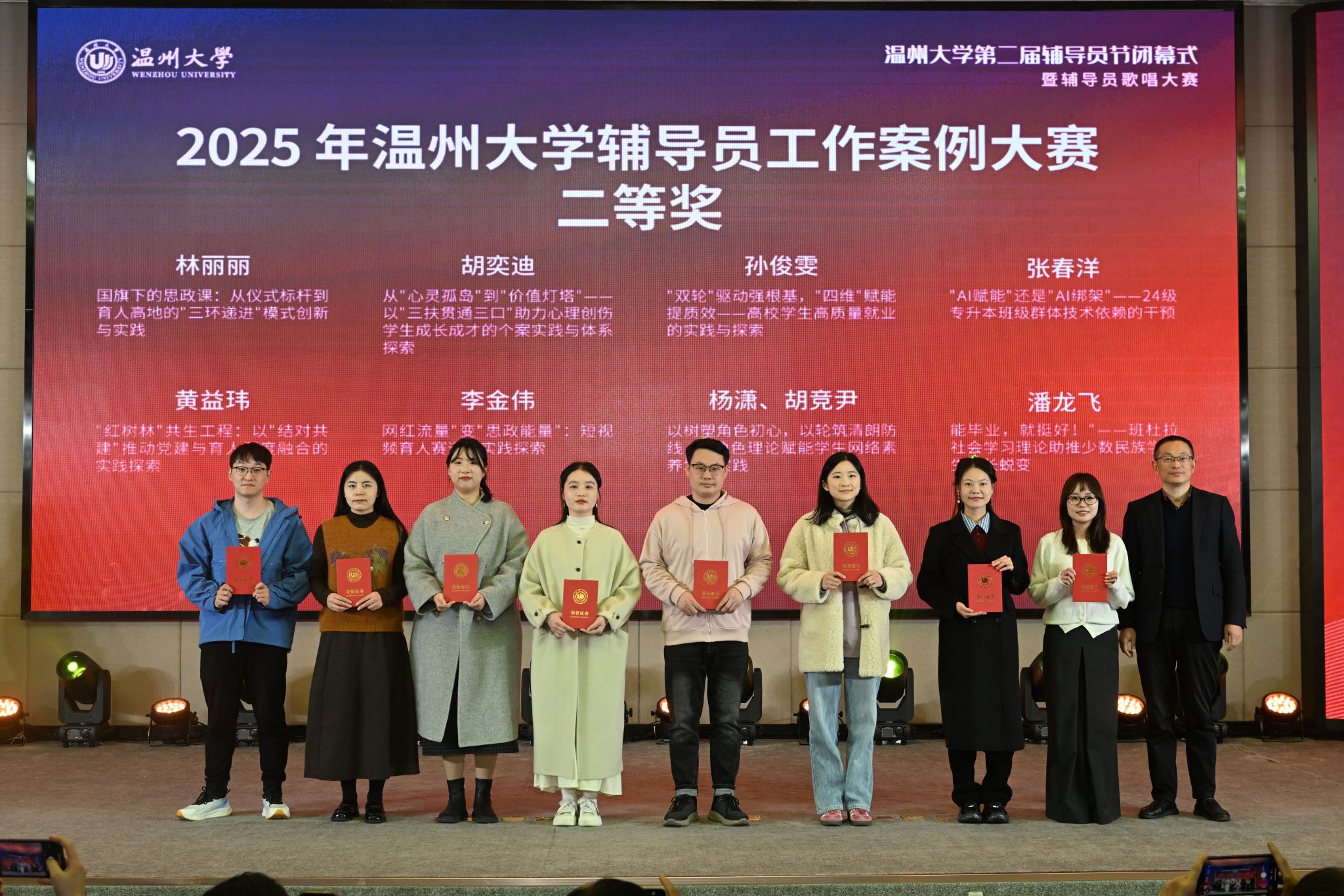 随后的辅导员歌唱大赛中,来自19个学院的辅导员代表相继登台献艺。比赛现场歌声飞扬、精彩纷呈,合唱、情景演唱、歌伴舞等多元形式充分展现了辅导员队伍的多才多艺与青春风采,生动诠释了育人路上的真挚情怀与执着坚守。本次大赛由招商银行温州分行提供赞助支持。经专业评委现场评审,体育与健康学院凭借出色表现斩获金奖,法学院与继续教育学院荣获银奖,生命与环境科学学院获得铜奖。