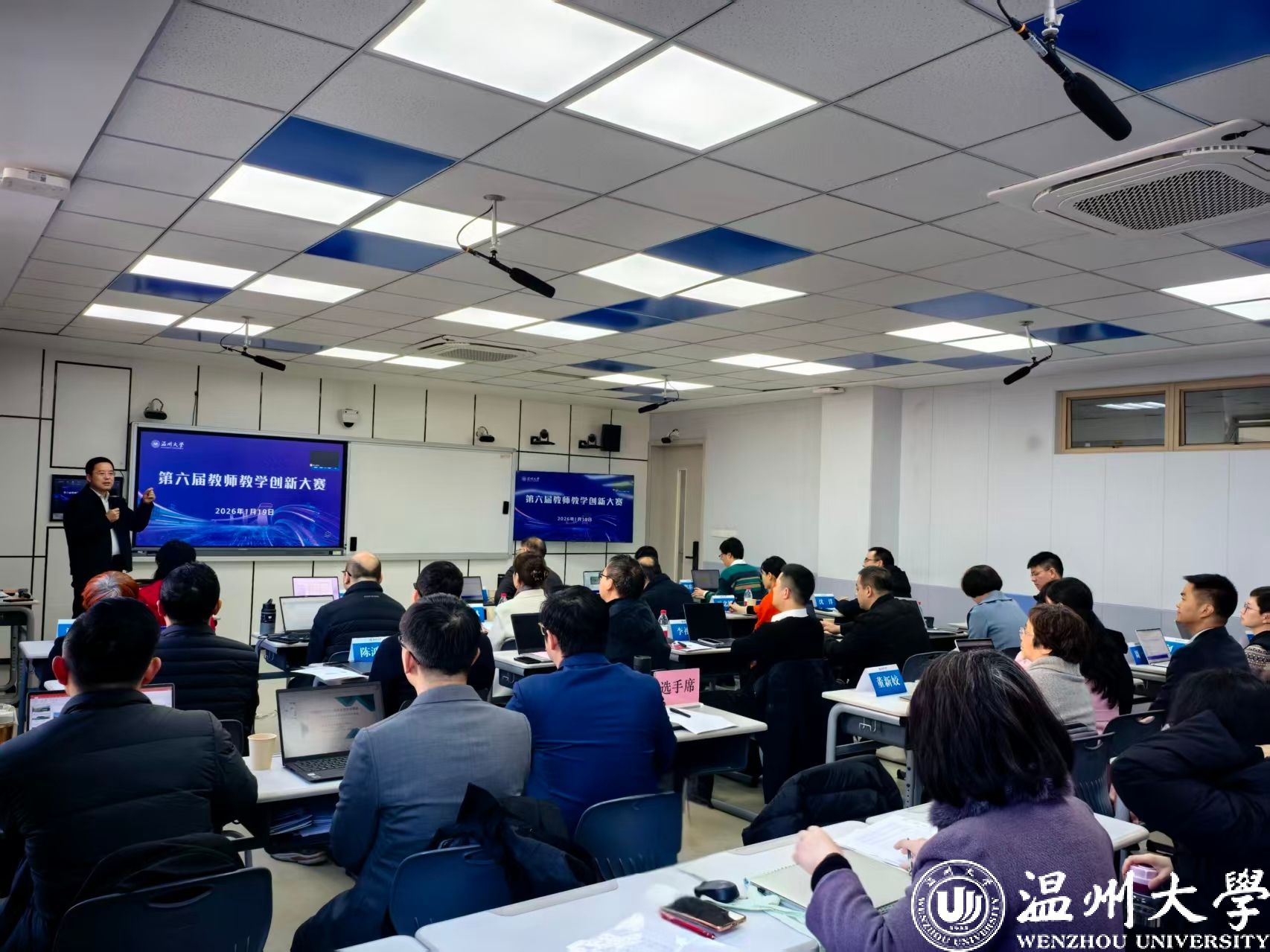 1月19日,温州大学第六届教师教学创新大赛决赛正式举行。本项赛事是《教育部直属单位三评一竞赛保留项目清单》中唯一的高校教师教学竞赛活动,采取“校赛—省赛—国赛”三级赛制。本次决赛特邀浙江省高等教育学会副秘书长、浙江省高等教育评价研究院执行院长施建祥教授,宁波大学教务处处长胡良根教授等多位校外专家莅临评审,同时邀请校内教学名师、各学院负责人及相关职能部门负责人等近40位专家共同担任评委。百余名教师现场观摩学习。大赛由教师教学发展中心主任宋占美主持。