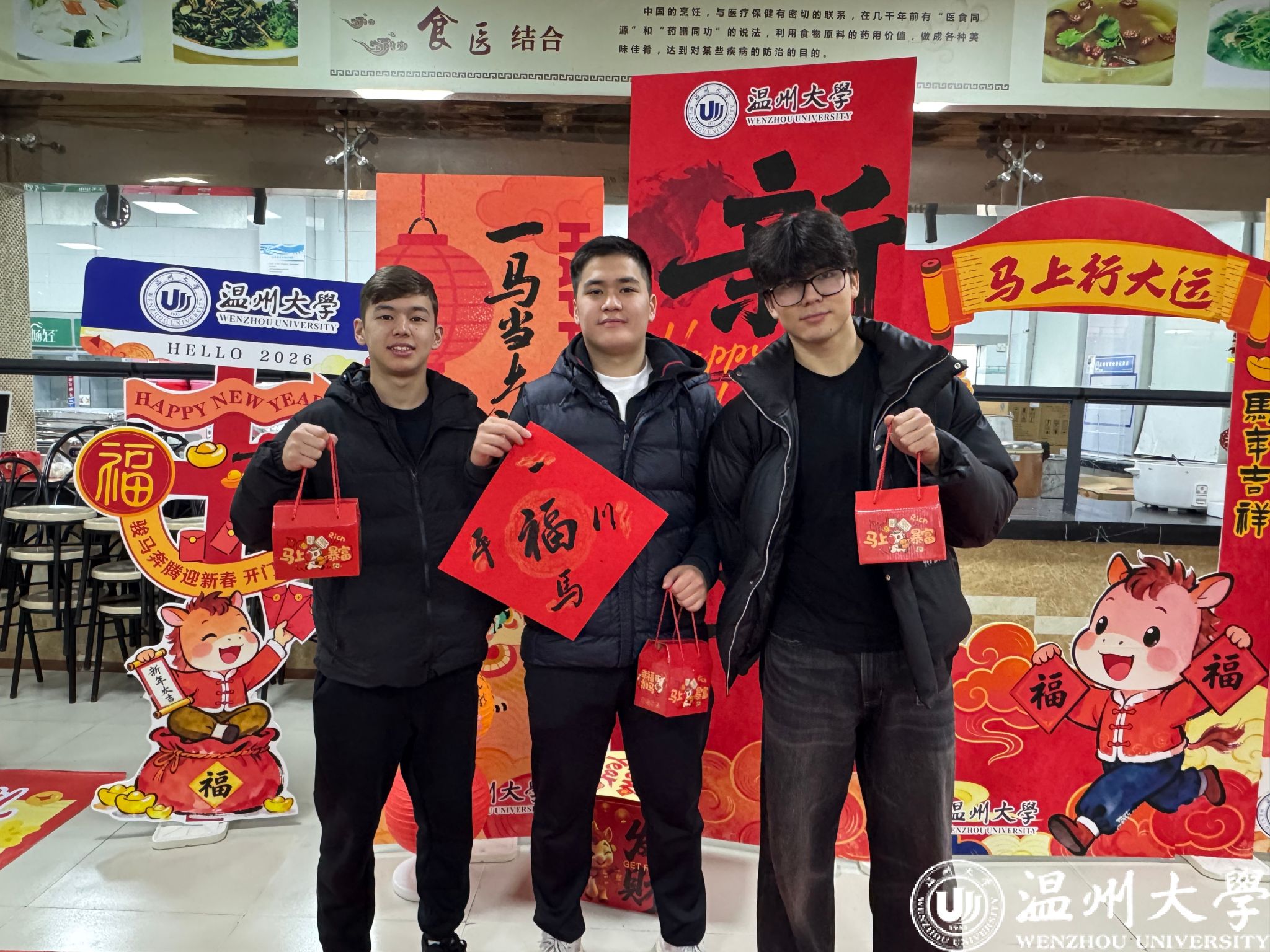 校领导们深入到各个活动区域,与同学们亲切交谈,详细询问留校期间的学习生活安排,为大家送上新春祝福。“学校就是你们的家,希望大家在温大度过一个温暖、安全、有意义的春节。”庄兴忠副书记表示,学校始终牵挂留校学子,通过丰富的活动让中外学子沉浸式感受中华优秀传统文化,在校园里收获归属感与幸福感。王舜副校长还专程到学生宿舍看望慰问了留校国际学生。