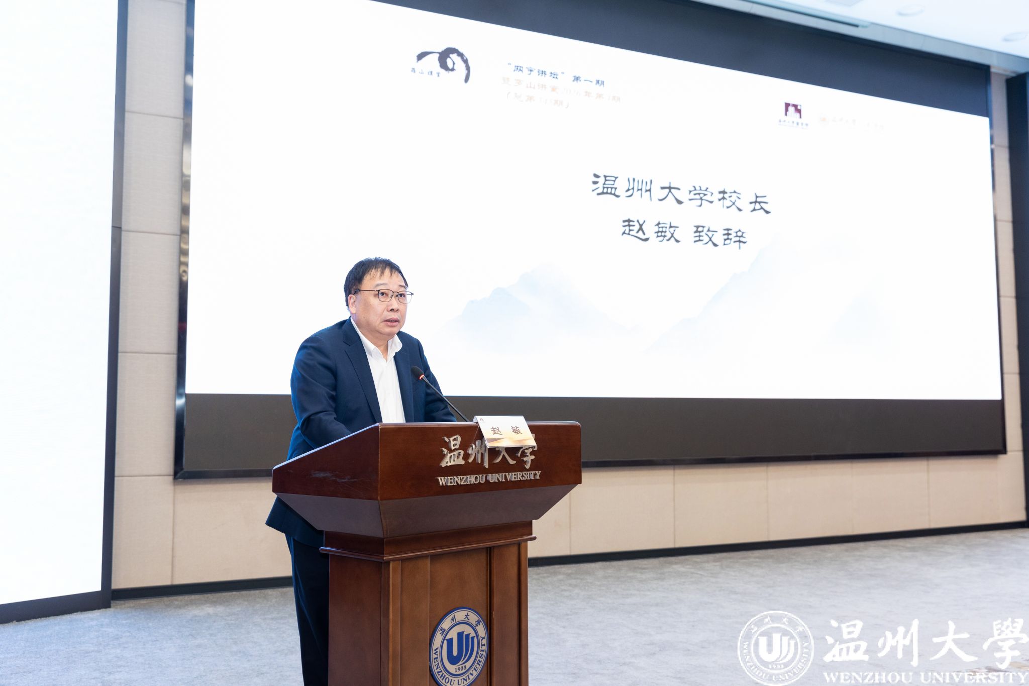 讲座伊始,赵敏校长致欢迎辞。他指出,当前 AI 技术广泛应用,文本生成日益便捷高效,如何守护语言本真、坚守思想深度、传承文化脉络,已成为全社会必须直面的时代命题。随后,主持人哲贵以幽默睿智的语言介绍主讲嘉宾,深情回顾了李敬泽老师对温州文学事业的长期关注与支持,为整场讲座奠定了温情而温暖的基调。