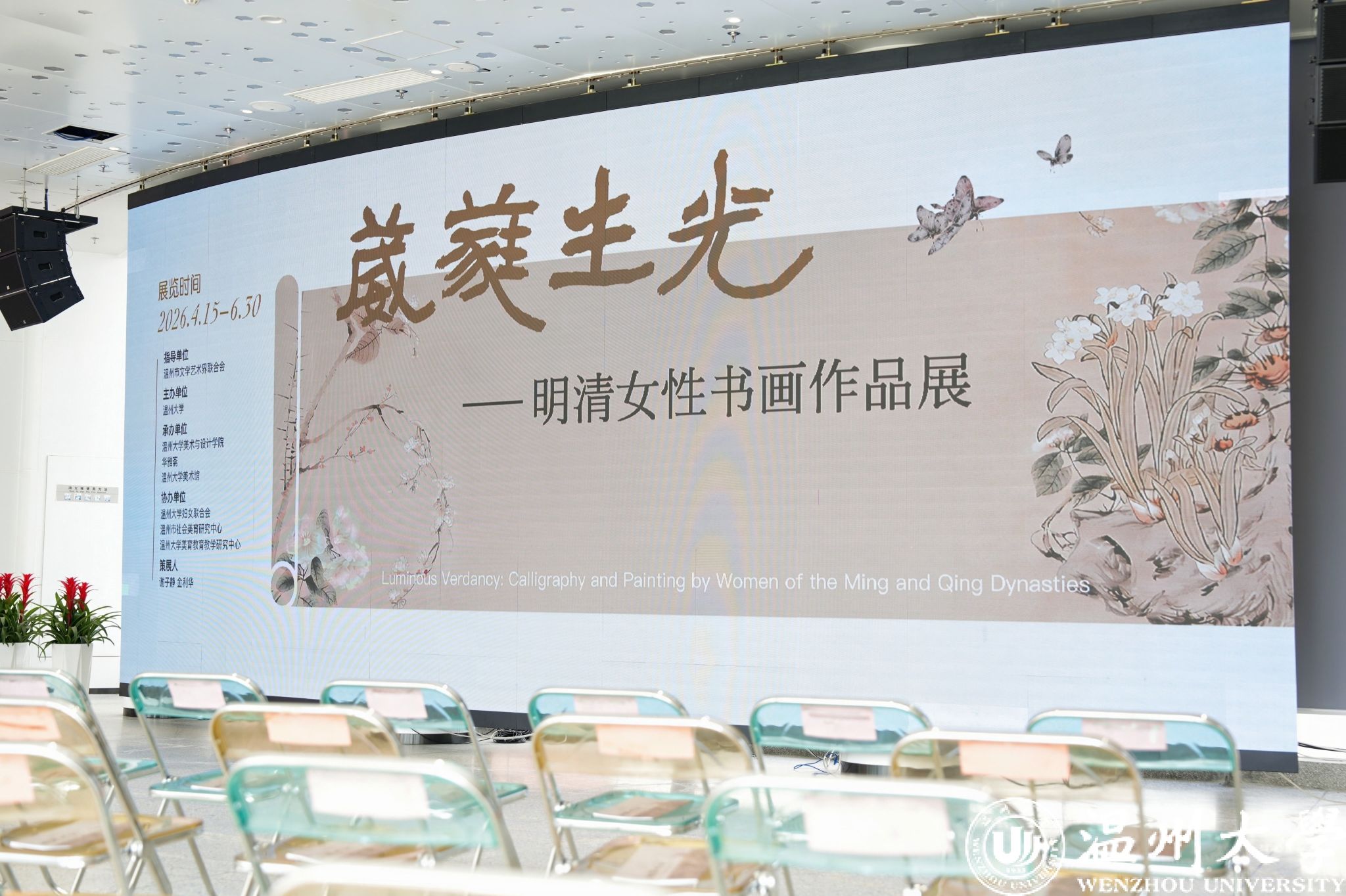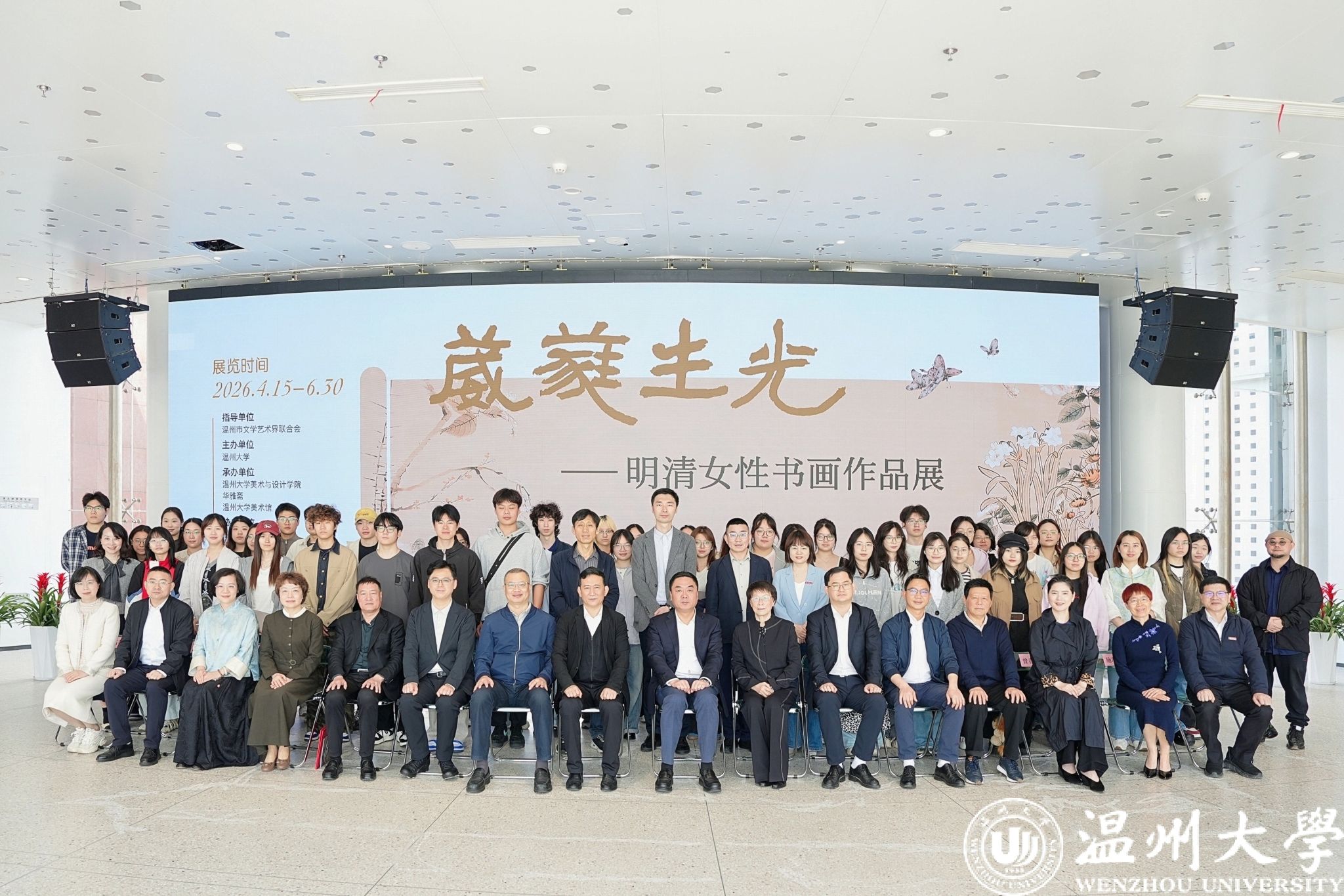 4月20日上午,“葳蕤生光——明清女性书画作品展”在温州大学美术馆启幕。本次展览由温州大学主办,温州大学美术与设计学院、华雅斋、温州大学美术馆承办,温州市社会美育研究中心、温州大学妇女联合会、温州大学美育教育教学研究中心协办,并得到温州市文学艺术界联合会等单位的大力支持与指导。展览以《诗经》中“草木葳蕤”为诗意内核,旨在系统呈现明清两代女性书画家的艺术成就,重估被历史话语长期边缘化的女性艺术实践,向那些隐于闺阁、才情卓绝的女性艺术家致以深切的学术敬意与人文关怀。