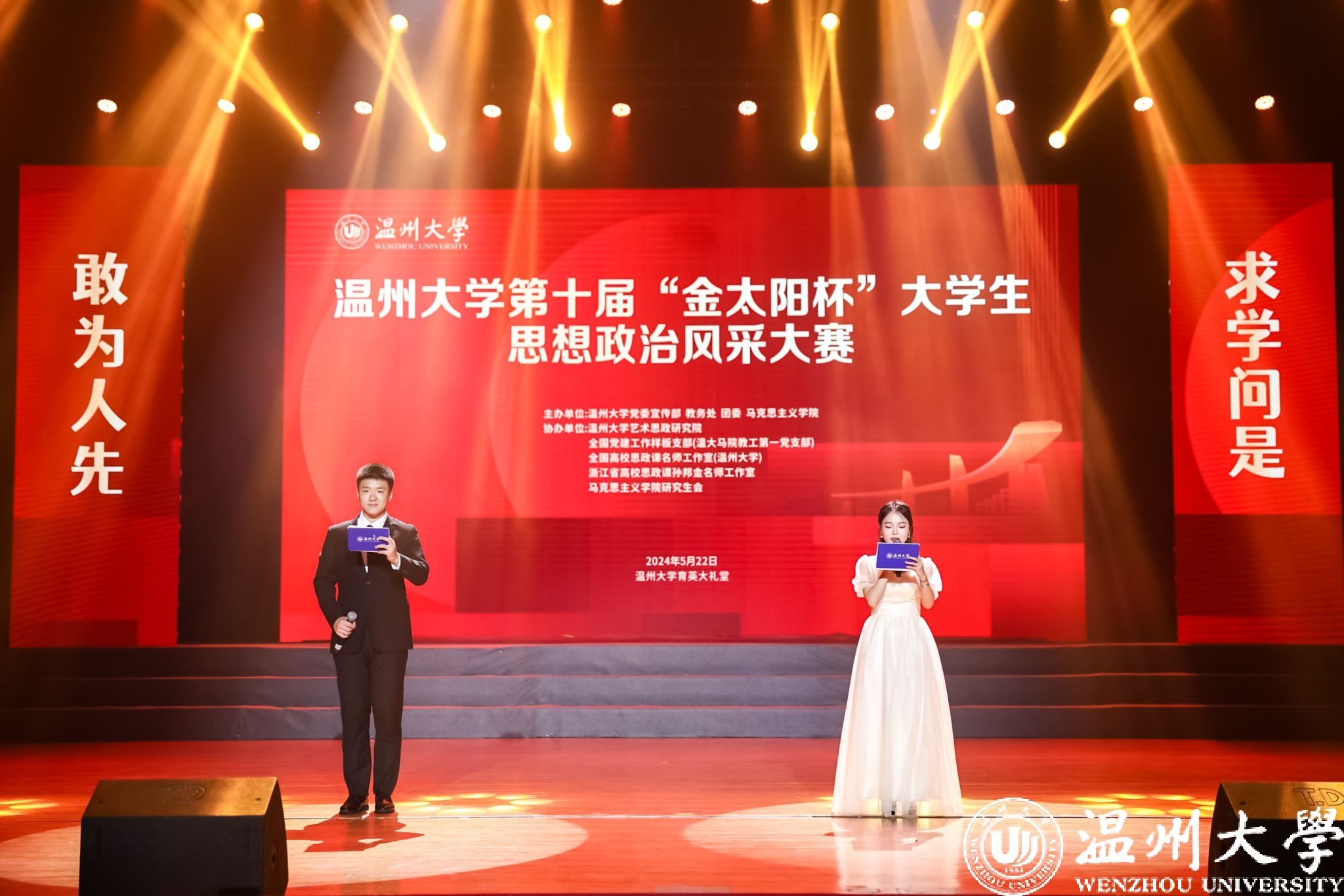 为深入学习贯彻习近平总书记对学校思政课建设作出的重要指示精神,不断开创新时代思政教育新局面,努力培养更多让党放心、爱国奉献、担当民族复兴重任的时代新人。5月22日下午,温州大学第十届“金太阳杯”大学生思想政治风采大赛决赛在育英大礼堂举行。