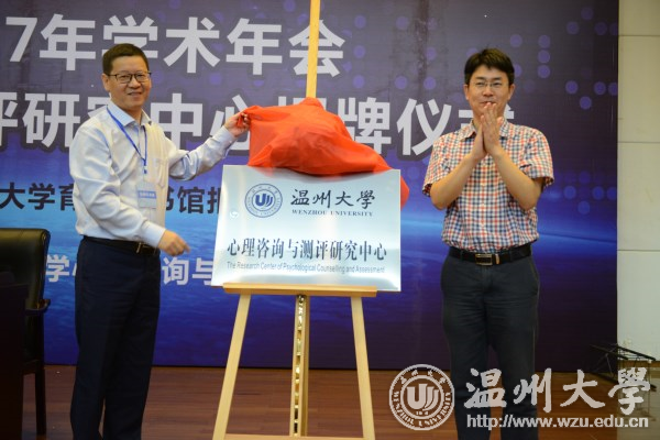 6月17日上午,温州大学心理咨询与测评研究中心揭牌仪式在育英图书馆报告厅举行。校党委委员、组织部长、温州市心理学会理事长郑信军教授,浙江省心理健康指导中心主任庞红卫博士,温州市教育教学研究院副院长陈素平,我校教师教育学院相关负责人和师生代表参加揭牌仪式。 郑信军和庞红卫为温州大学心理咨询与测评研究中心揭牌。