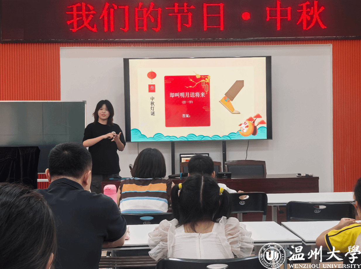 中秋月圆至,文化润心田。10月6日下午,温大马院“高校行走的思政课”科研项目团队的大学生们将思政课堂搬进了蒋家桥社区,为社区的孩子们带来了一堂以“月满中秋·情系中华”为主题的别开生面的传统文化体验课。此次活动是该项目探索思政教育新模式、拓展育人路径的一次生动实践,旨在通过沉浸式、互动式的教学,让小学生们在感知传统节日魅力的过程中,增强对中华优秀传统文化的认同与热爱。