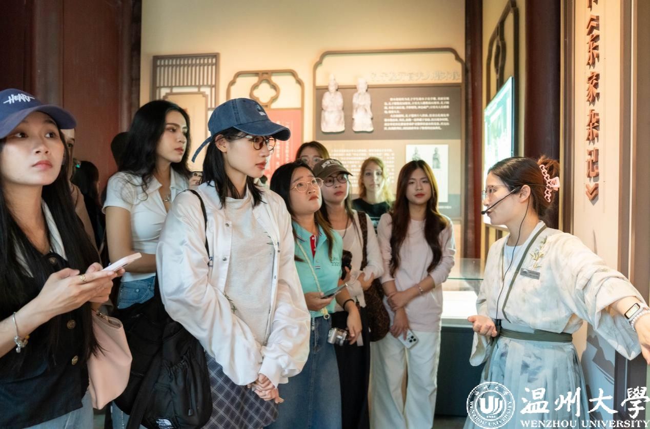 活动首日,学员们身着典雅汉服,在孔子文化公园庄严肃穆的孔子像前整齐列队、合影留念,衣袂飘飘间尽显对中国传统文化的敬畏之心,也开启了与南孔文化的深度对话。随后,孔子学院汉学生一行走进孔氏南宗家庙,在讲解员的引导下,逐一参观家庙内的殿宇楼阁、碑刻文物,详细了解孔氏家族南迁衢州后,如何坚守儒家文脉并推动其在南方的传承发展,深刻体会"东南阙里、南孔圣地"的文化分量。