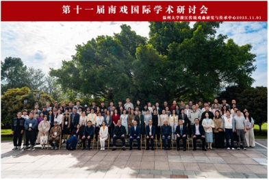 近日,第十一届南戏国际学术研讨会在温州大学举办,活动由温州大学、温州市文化广电旅游局联合主办,温州大学人文学院、温州大学浙江传统戏曲研究与传承中心、温州市文化艺术研究院承办,鹿城区文化和广电旅游体育局、永嘉县文化和广电旅游体育局协办。本次会议共收到论文70余篇,研讨内容涵盖南戏研究、古代戏曲、曲体曲律、戏曲理论、昆曲传播、近代戏曲、域外戏曲、地方戏以及戏曲学术史等多个领域。来自中国国内及澳大利亚、韩国、美国等国家地区的近50所高等院校与研究机构的近百名专家齐聚一堂,围绕南戏起源与流变研究、南戏作家与作品研究、《宋元南戏百一录》研究、古代戏曲相关问题研究、民营剧团生存与发展研究、戏曲创造性转化与传播研究等议题展开了深入的学术交流。