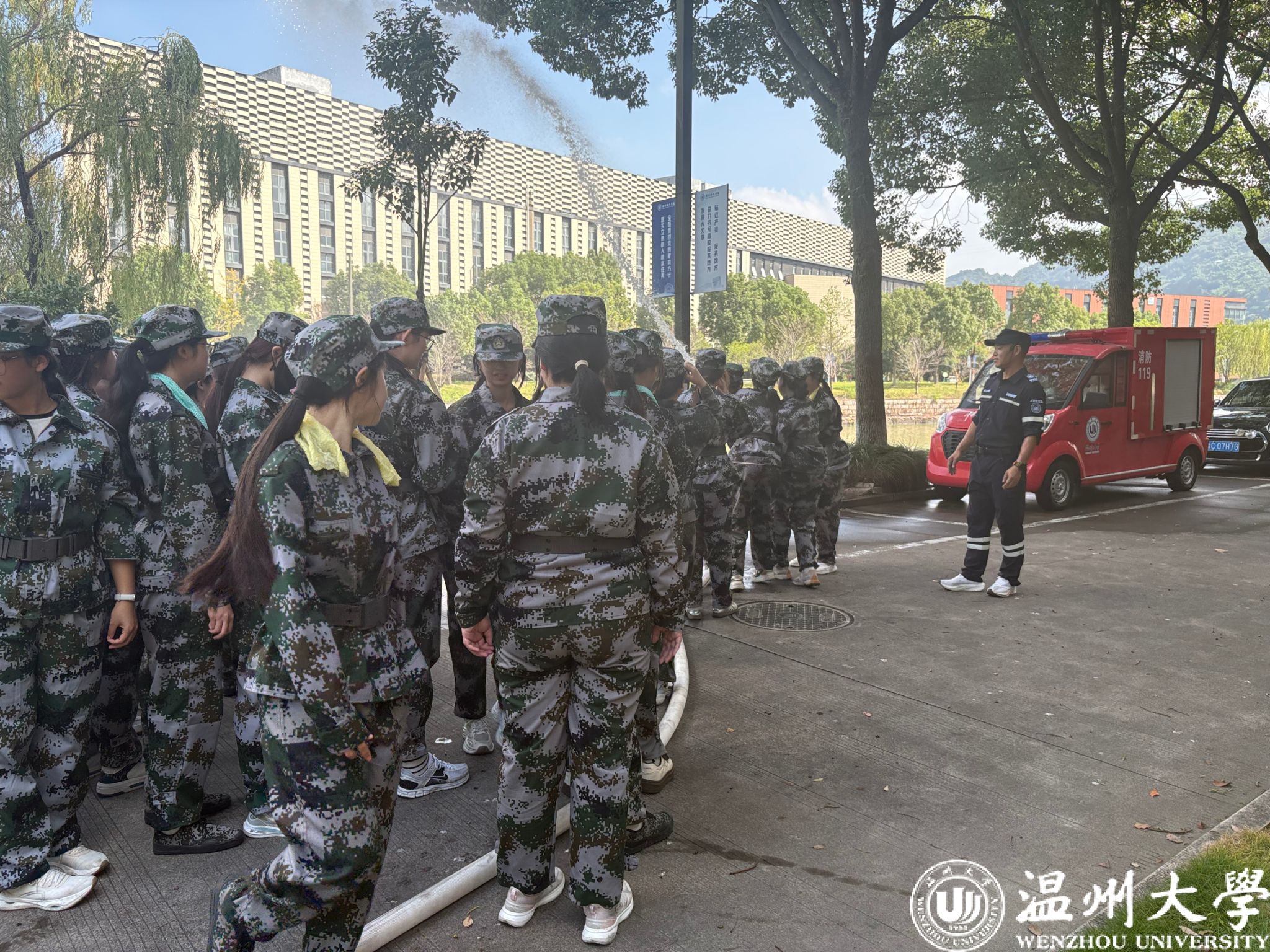 温州大学开展新生消防安全技能培训。