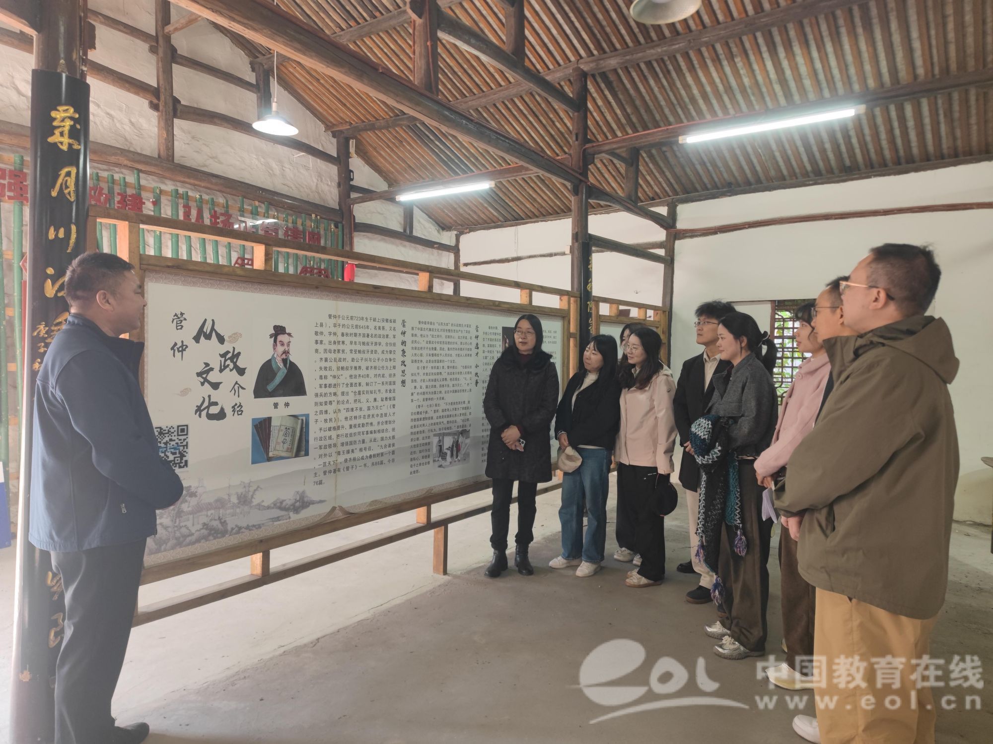 活动伊始,全体人员实地参观了古村内的管子文化遗迹,聆听管仲尊王攘夷、九合诸侯的历史功绩。章志图结合《管子·牧民》中“四维(礼义廉耻)不张,国乃灭亡”的治国理念指出:“管仲将‘廉’与‘礼义耻’并列为国家存续的四大支柱,本质是通过道德教化与制度约束的结合,培养‘知廉耻、明大义’的国民品格——这与当前教育学院开展的立德树人综合机制改革核心目标高度契合。”他进一步阐释,管仲辅佐齐桓公成就霸业时,既注重“盐铁富国”的经济基础建设,更强调“选贤任能”的吏治改革和“礼法并用”的社会治理。其“治国必先治吏”“化民成俗”的实践逻辑,正是“通过关键群体的廉洁与德行,引领整体生态向上向善”的早期探索。“这些举措对当前的师德师风建设、学生品德培养、校园廉洁生态建设具有重要启发。”章志图强调,教育工作者需从历史中汲取智慧,将廉洁基因融入育人全过程。