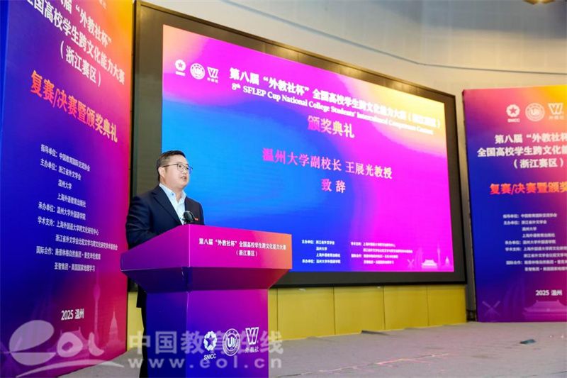 11月22日至23日,第八届“外教社杯”全国高校学生跨文化能力大赛(浙江赛区)复赛/决赛在温州大学成功举办。本次大赛由浙江省外文学会、温州大学和上海外语教育出版社联合主办,温州大学外国语学院承办,旨在探索全球化表达新路径,提升对外传播实效性。经过激烈角逐,浙江传媒学院、浙江师范大学和温州大学代表队脱颖而出,荣获“特等奖”。