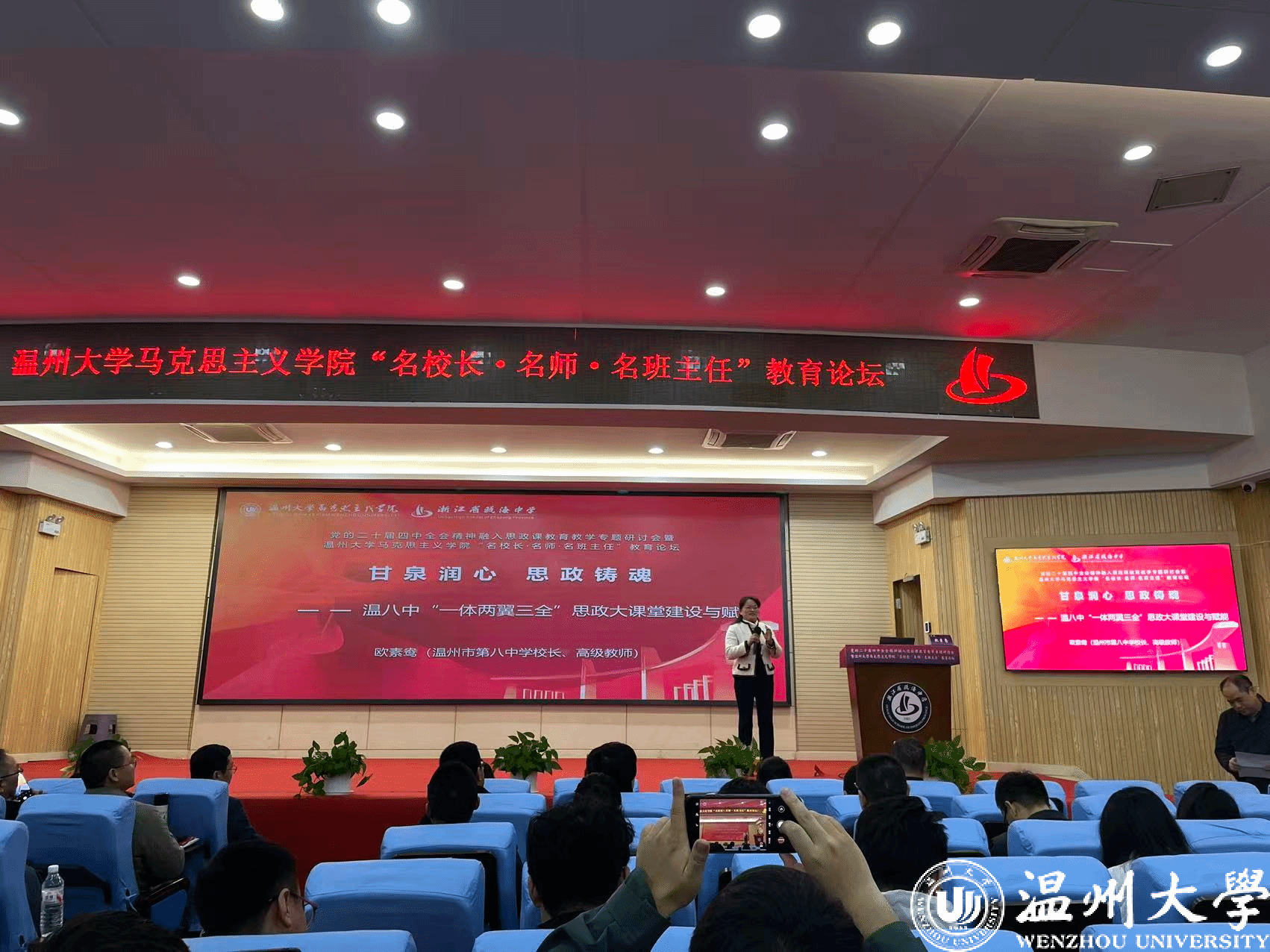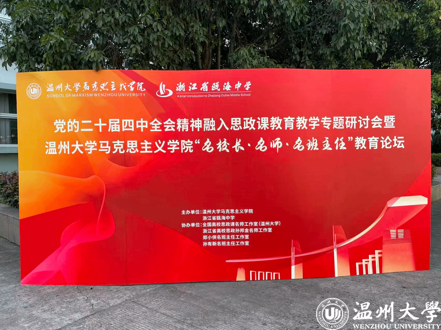 本次论坛由温大马院和瓯海中学共同主办,全国高校思政课名师工作室(温州大学)、浙江省高校思政孙邦金名师工作室、郑小侠名班主任工作室、孙有新名班主任工作室协办。