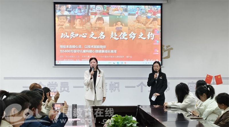 知心姐姐党支部书记严晓秋与学生党员李颖同台宣讲,以“知心”历程为脉络,阐释了团队坚守初心、担当使命的内在逻辑。严晓秋强调,团队的成长离不开党的创新理论指引,每一次温暖服务都是党员践行初心的生动注脚。她希望青年学子将理论学习成果转化为服务社会、助力共富的实际行动,实现理论宣讲与志愿服务的同频共振。