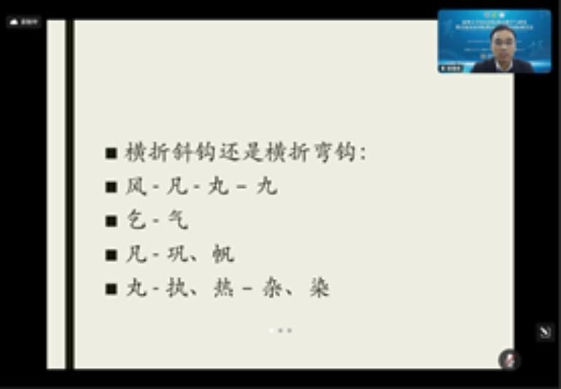 11月28日晚8点,温州大学人文学院副教授、国家语言文字推广基地(温州大学)副主任骆锤炼老师进行了第二场线上培训讲座,主题为“汉字的形体与书写规范”。