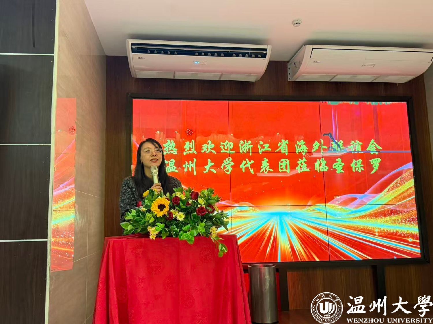 温州大学华侨学院包含丽院长深情讲述了跨越两万多公里抵达“最遥远国度”的旅程感受,并对几十年如一日往返中巴、爱国爱乡的侨领们表达了由衷的敬意与感动。她表示,踏上巴西土地感受到的浓浓乡情温暖人心,代表团成员是作为“来自祖籍国和家乡的亲人”前来相聚。包含丽介绍了温州大学作为侨乡高等学府的快速发展与国际影响力,特别是近年来在侨务研究、华文教育、服务全球华侨华人方面取得的显著成绩,包括为来自全球的7000多名华裔新生代提供学习机会,并承诺为符合条件的华侨学生提供奖学金。她强调,文化传承对于华裔新生代至关重要,文化自信是激发潜能的力量源泉。她代表全体教师郑重承诺,在未来七天的“文化大乐园”活动中,必将倾尽全力,将中华五千年的文化能量传递给孩子们,帮助他们成为优秀的华裔新生代,并期待在结营晚会上呈现令人震撼的教学成果。