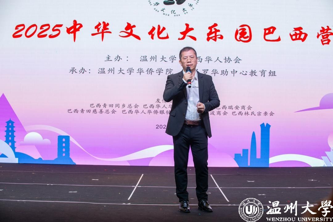 作为活动场地方代表,巴西德馨双语学校校长魏万古在致辞中对温州大学代表团表示热烈欢迎。他深情指出,文化是根,是“留根工程”,是全体华侨华人的共同责任,而非一人一校之事,并对各侨团、社团对本次中华文化大乐园活动给予的大力支持表示诚挚感谢。当天活动,营员代表,家长代表纷纷上台分享一周的收获。