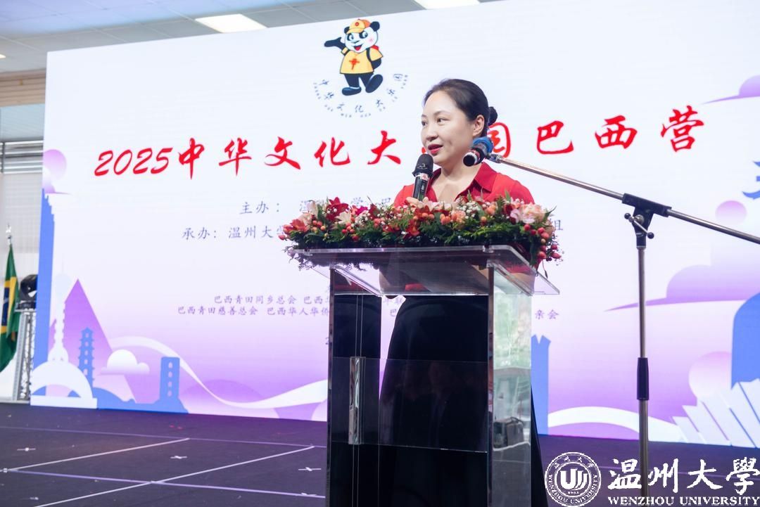 胡军组长代表华助中心发言,衷心感谢温州大学教师团队不远万里、无私奉献,为巴西华裔青少年带来系统而生动的中华文化课程。