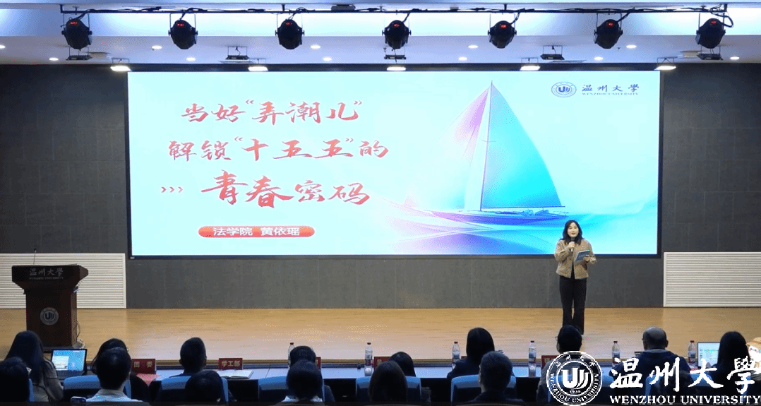 “可能有同学会问:我知道‘十五五’很重要,但我一个普通大学生,能做些什么呢?其实答案很简单,就是把‘大目标’拆成‘小行动’。”来自温州大学法学院的辅导员黄依瑶老师以《当好“弄潮儿”,解锁“十五五”的青春密码》为题,从“成就回望我们都是见证者”、“扎根地方我们都是领航者”等方面展开,激励青年学子要练就一项硬本领、参与一次真实践、树立一种大格局。