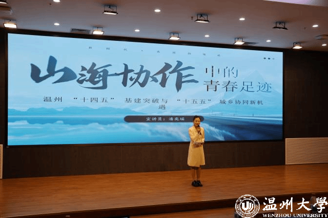 日前,温州大学步青厅里传来阵阵掌声。温州大学“新时代真理的味道”青春宣讲团示范宣讲活动在此举行,7位青年师生宣讲员轮番开麦,用“青言青语”宣讲党的二十届四中全会精神,为现场300余名师生带来一堂生动的思政大课。