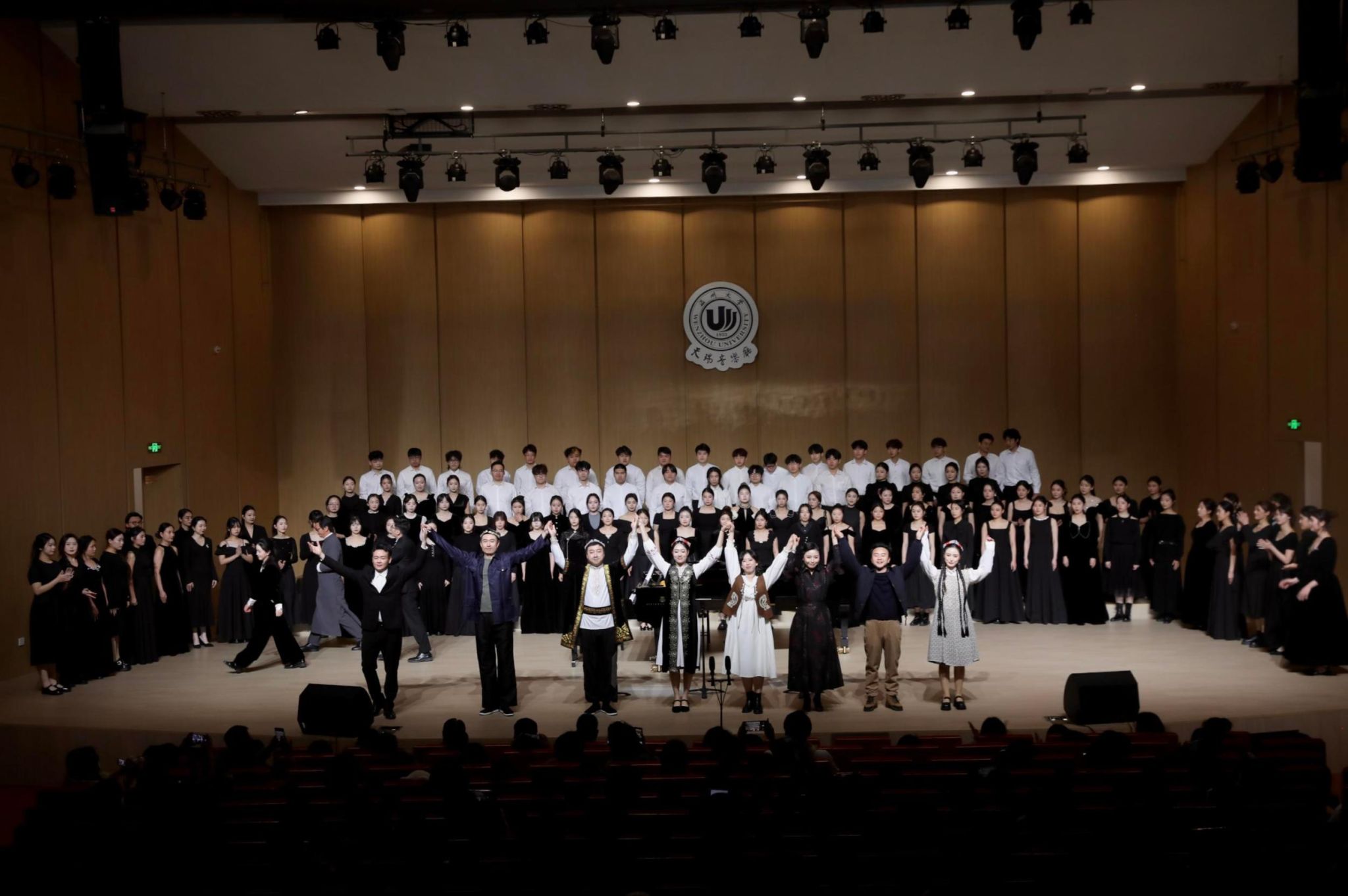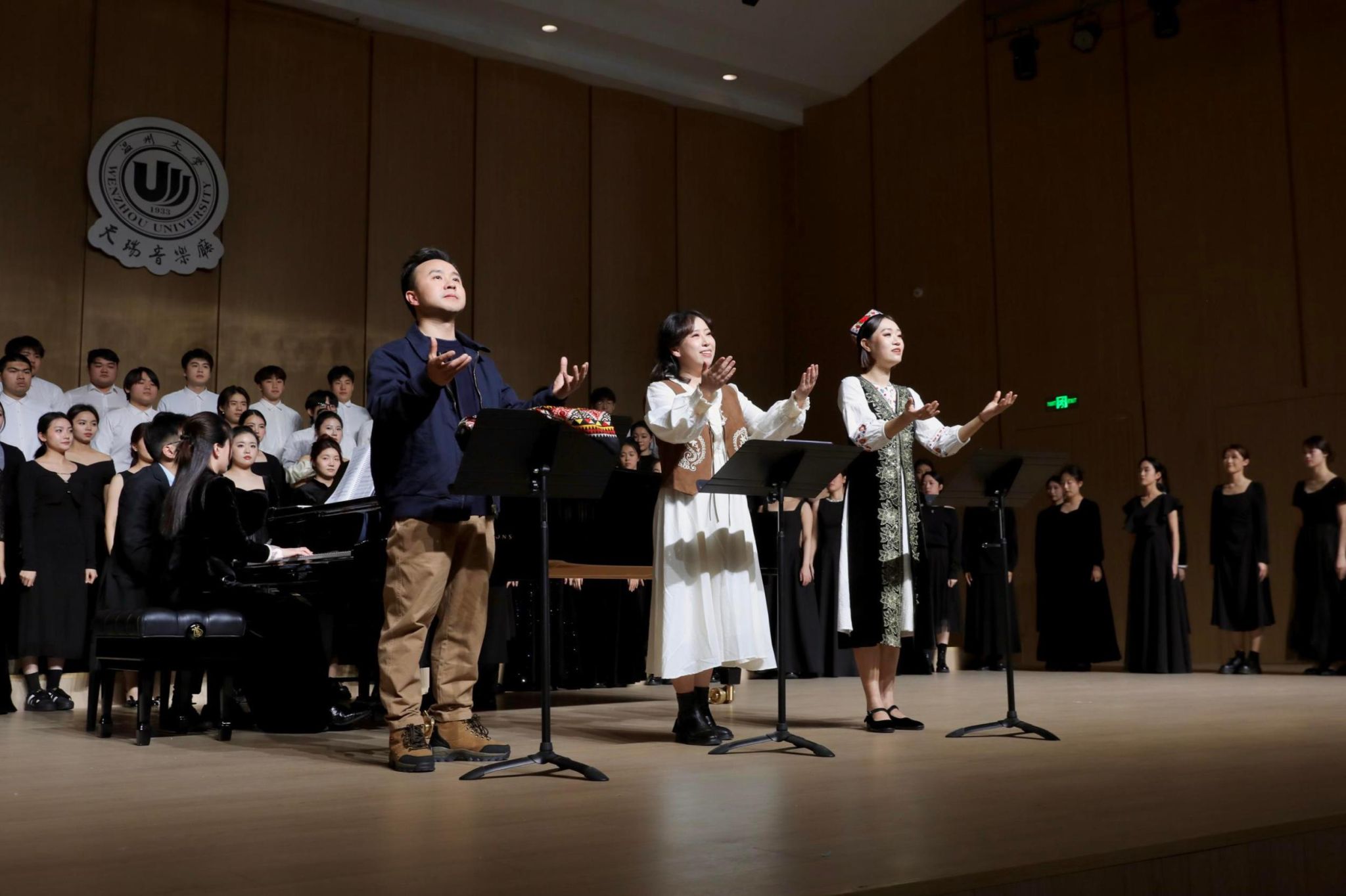 温州网讯 (记者 王嘉叶)伴随最后一个音符落下,雷鸣般的掌声响彻温州大学北校区天瑞音乐厅,温州大学音乐学院倾力打造的原创民族歌剧《石榴红》,于1月5日晚完成音乐会版首演。作品以纯粹“温州基因”——温州人编剧,温州大学师生作曲、演绎,讲述了一个跨越时空、感人至深的浙疆民族团结故事。