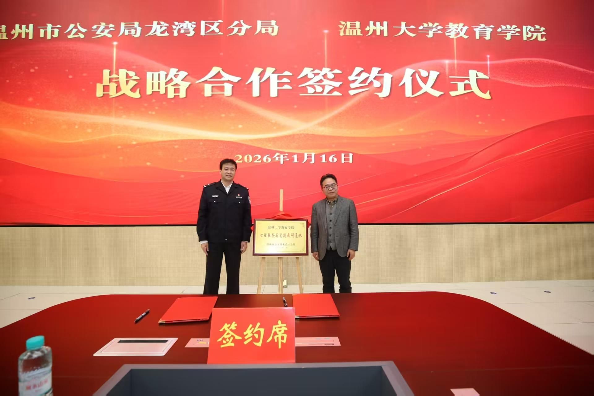 1月16日,温州大学教育学院与温州市公安局龙湾区分局战略合作框架协议签约仪式在龙湾区公安分局举行。