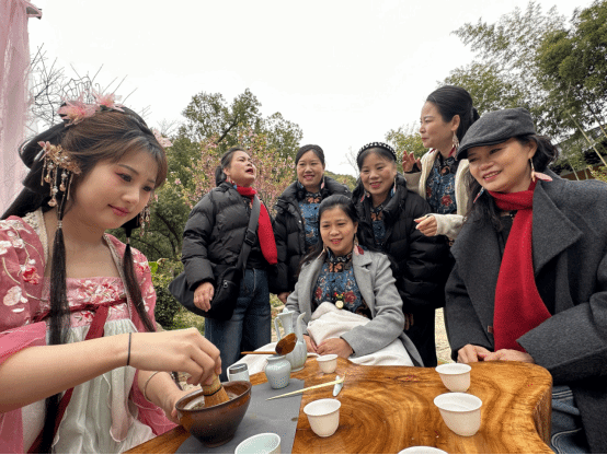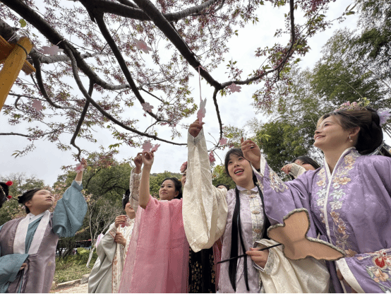 温州大学人文学院、瓯玉汉服社为市民带来沉浸式汉服雅集体验,以樱为媒、以礼传情,为春日添彩、为园博助力。