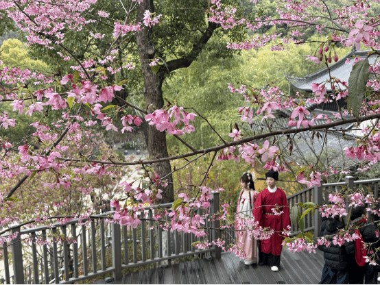 3月8日正值三八“女神节”来临之际,作为第十五届中国(温州)国际园林博览会博览点,景山公园以“特别的爱给特别的你”为主题,推出华服载道・春熙同行樱花文化节特别场。