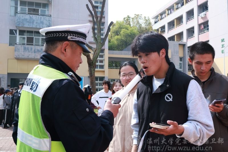 3月25日,“筑牢校园安全底线,文明骑行不‘越界’”交通安全主题宣传活动在温州大学生活区E区榕树文化广场举行。本次活动由温州大学校警驿站联合温州市公安局交通管理支队城市道路四大队八中队开展,旨在以沉浸式体验与趣味互动相结合的方式,将交通安全知识精准送达学生身边,进一步筑牢校园交通安全防线。活动现场精心设置了“酒驾体验”“答题互动”“套圈兑奖”“铁骑表演”四大板块,形式新颖、内容丰富,吸引了大批学生踊跃参与,气氛热烈。
