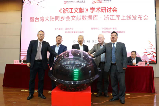 昨天,由中国社会科学院和中华全国台湾同胞联谊会共同指导,温州大学、社会科学文献出版社联合主办的《浙江文献》学术研讨会暨台湾大陆同乡会文献数据库·浙江库上线发布会在温州大学召开。发布会由温州大学图书馆馆长陈安金主持,全国政协常委、中华全国台湾同胞联谊会副会长、浙江省政协副主席张泽熙先生,温州大学党委书记谢树华,社会科学文献出版社总编辑杨群出席会议并致辞,温州大学徐和昆副校长,温州市委党校王健教育长,以及来自浙江大学、中山大学、温州大学、宁波大学、温州医科大学等高校和研究机构的数十位知名专家学者以及来自温州市图书馆、博物馆、纪念馆的嘉宾出席了此次会议。