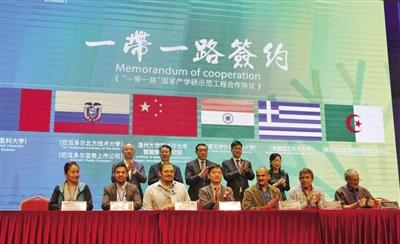 温州大学激光与光电智能制造研究院分别与五个国家的高校和上市公司等六家单位签订产学研合作协议。 周凌慧 摄