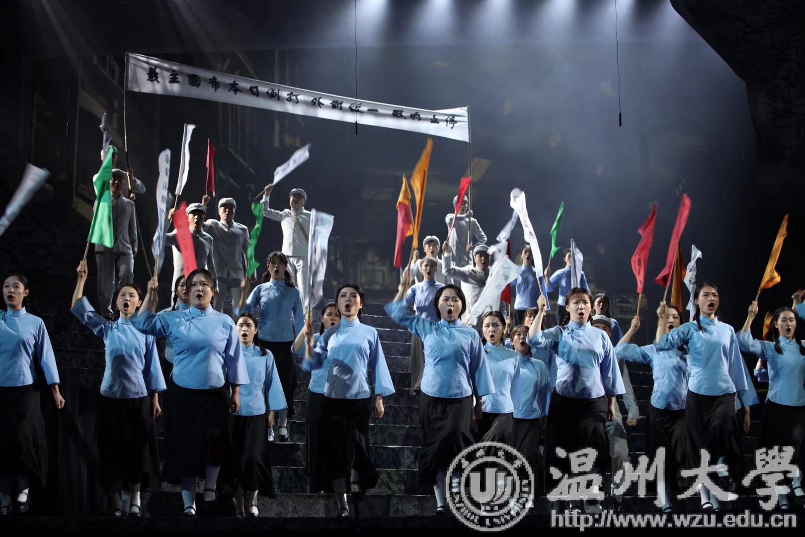10月7日、8日,由中共温州市委宣传部、温州大学、中共瑞安市委联合出品的中国原创歌剧《五星红旗》在温州大剧院试演,向新中国成立70周年献礼。