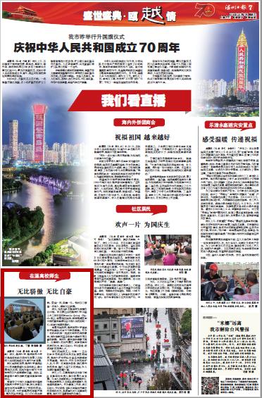 曾服役于中国人民解放军驻港部队的温州大学学生应丰泽,昨天身着自己服役时的军装参加了学校的活动。他告诉记者,当听到熟悉的国歌声响起,整齐的队列前进,自己内心热血澎湃。受阅一次,荣耀一生。他对自己曾是一名军人,感到无比骄傲。