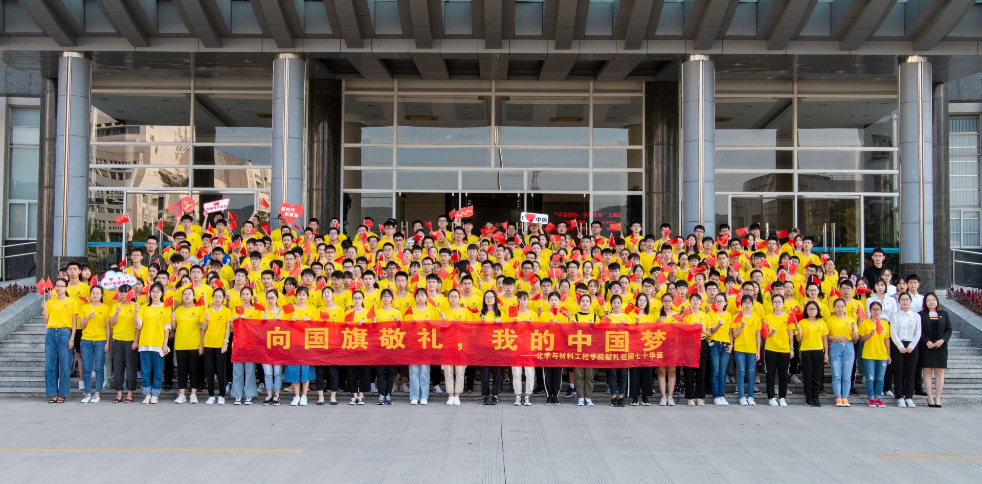 为隆重庆祝中华人民共和国成立70周年,大力唱响“礼赞新中国、奋进新时代”的青春主旋律。温州大学化材学子用“听说读写唱”等多种形式献礼祖国70华诞,为祖国母亲献上最诚挚的赞美。